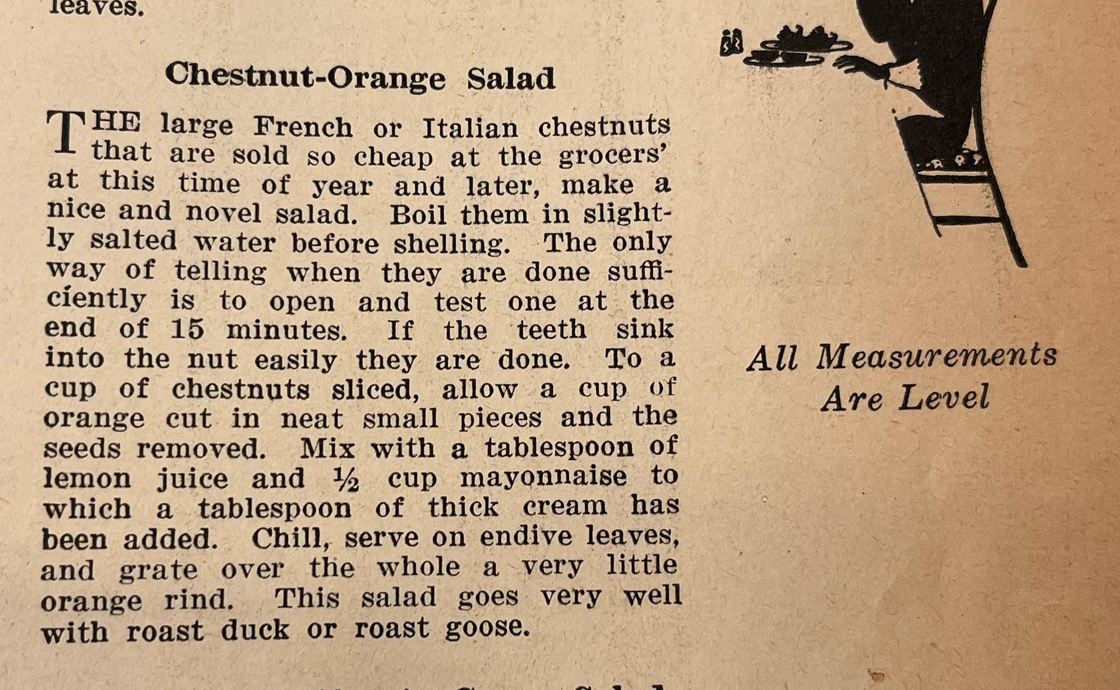 Please come back and update us when you try the salad. I’m also curious what nut might be a good substitute for the chestnut. The recipe looks interesting.