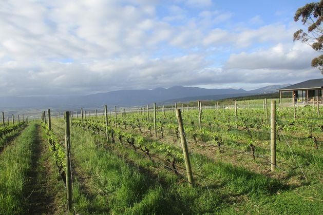 Clouds gathering over the vineyards of Iona on the high hills above the Elgin Valley