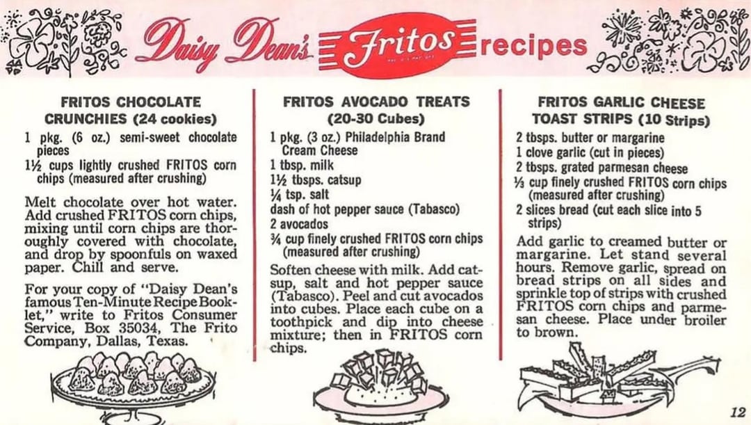 Couple of interesting old Frito recipes from the 1960s!by CryptographerKey2847 3 Comments kaitydid0330 3 days ago You know, the salami wedges don’t sound half bad notproudortired 3 days ago Ow, my artery. ChangedAccounts 3 days ago Nice! I’m surprised that my mother didn’t make one or more of these when I was growing up in the 60’s.