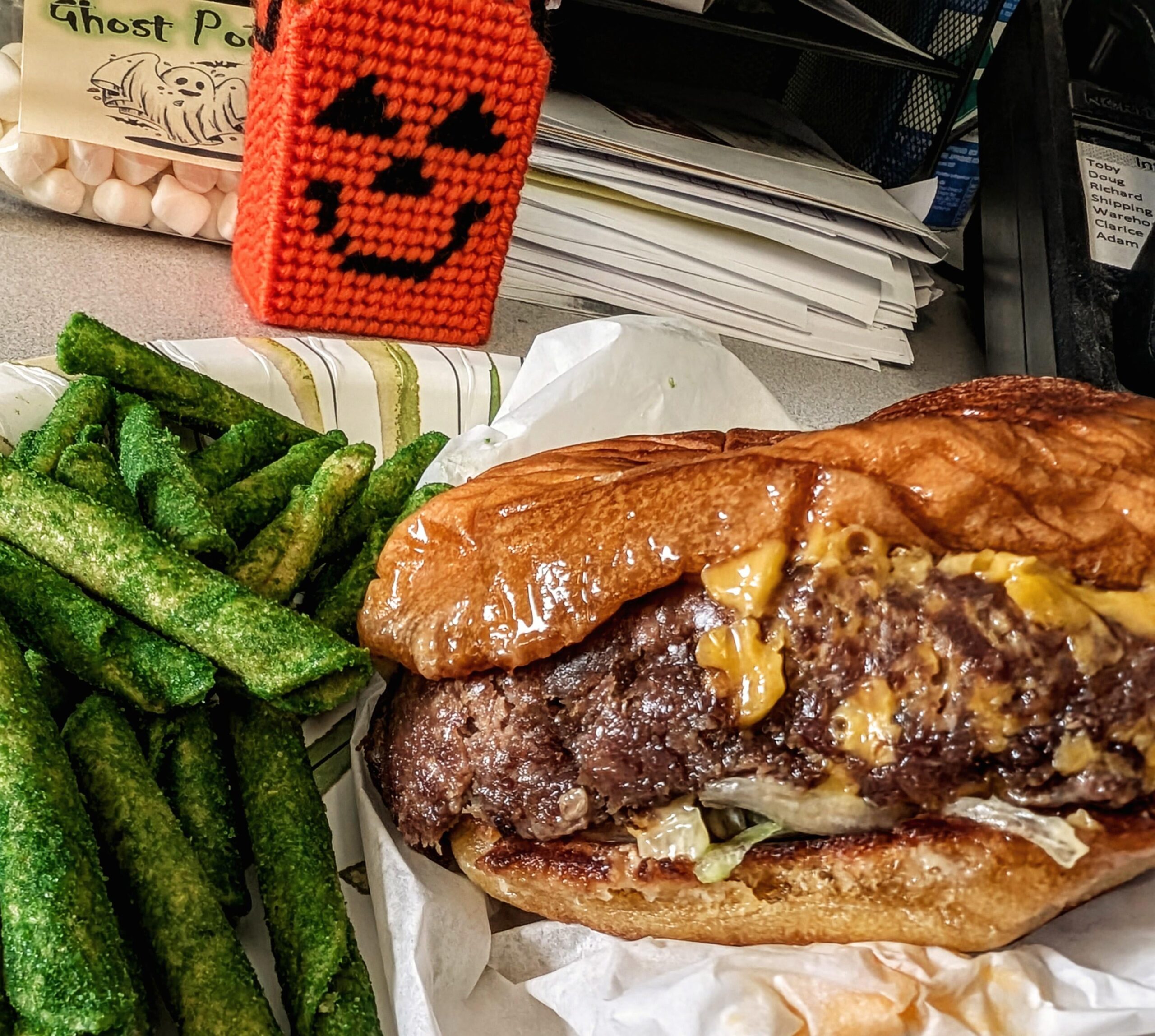 Really greasy Goon Burger (Vancouver, WA) and Zombie Takis for work lunch. Happy Halloween!by pincolnl1ves 2 Comments VoiceCharming6591 6 months ago Damn that looks delicious Mobile_Aioli_6252 6 months ago Looks delicious – are those green Takis????