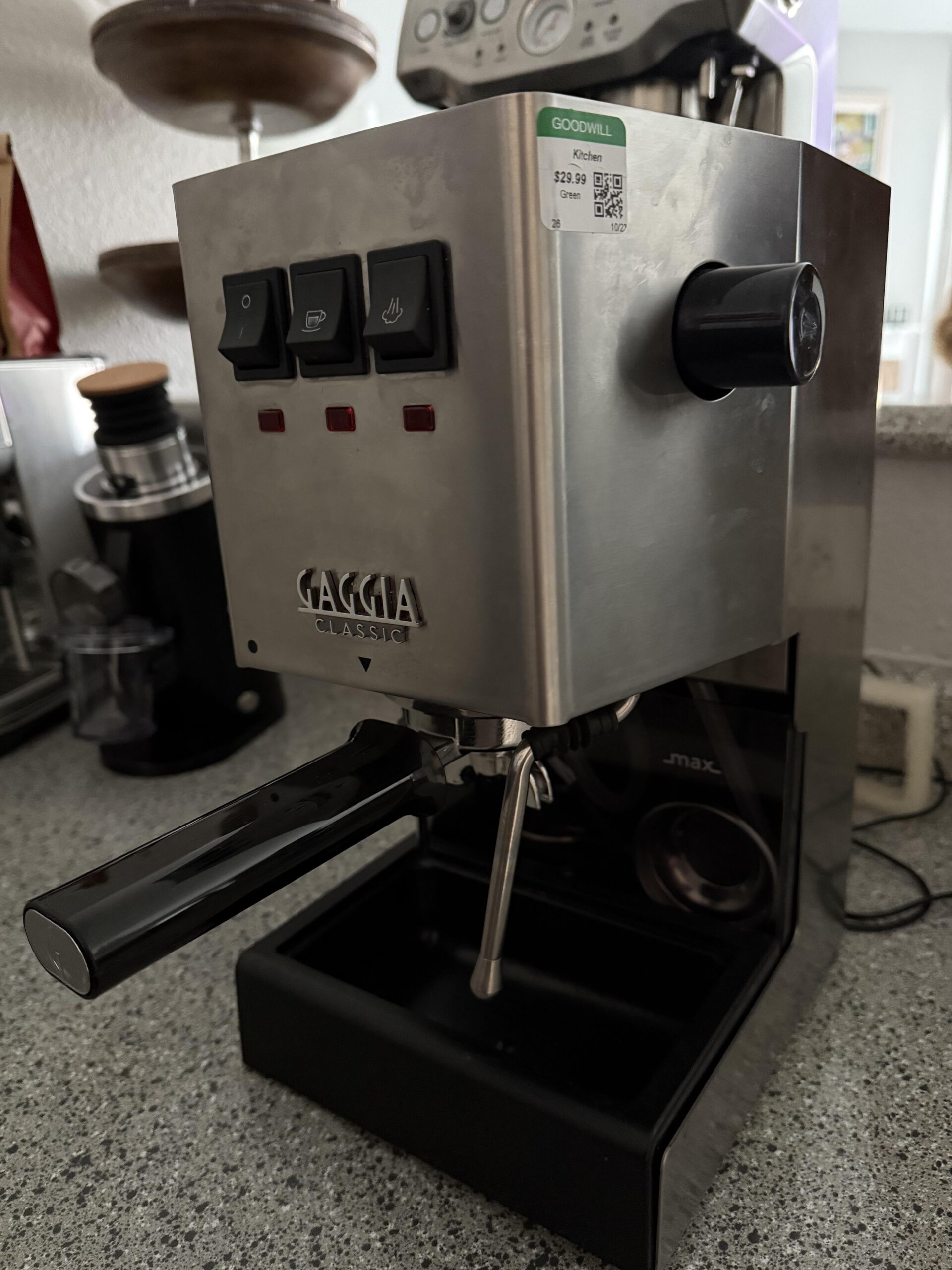 I just picked up a Gaggia Classic Pro at goodwill for $30. I’m upgrading from a Breville Barista Express so any tips are much appreciated! I had already picked up a used Breville Bambino but I’m having trouble dialing in, going to see if I can make this work 😆