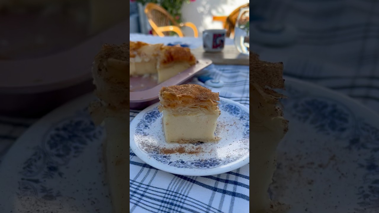 Using one packet of filo pastry use half the sheets layered with melted butter on bottom of tray allowing sheets to extend over the sides. Fill with custard and fold over the sheets towards the middle making sure there is butter between layers of those corners. Neatly double over each remaining filo sheets to make the top of the galaktoboureko. Brush butter between each layer and top off to produce even, flat sheets.
