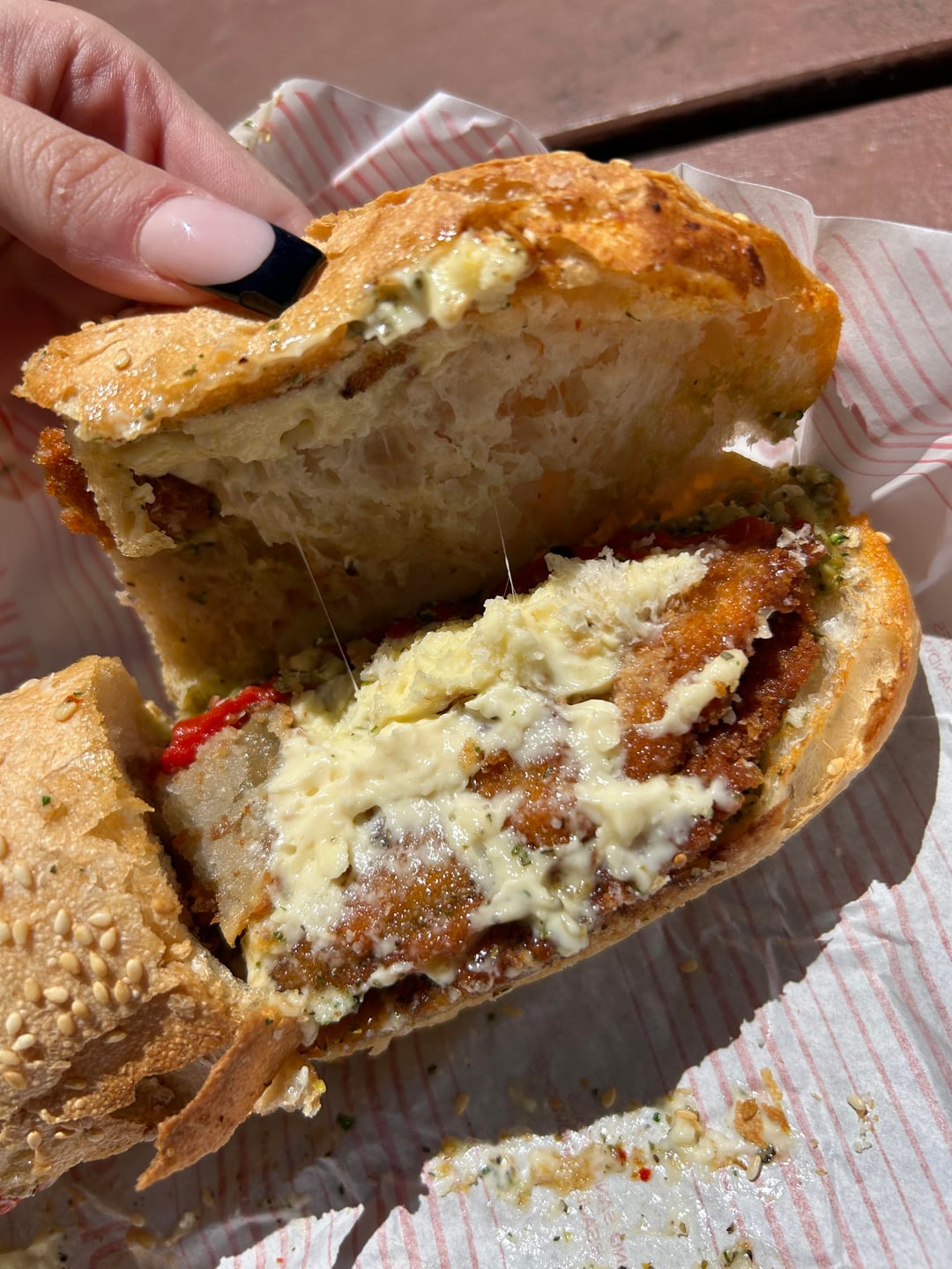 crumbed and fried eggplant, mozzarella cheese, basil pesto, roasted peppers and aioli sauce 🙏🏻 tyia!! by Own-Blackberry-1857 1 Comment Own-Blackberry-1857 3 months ago i estimated roughly ~600c for half. would you all agree?