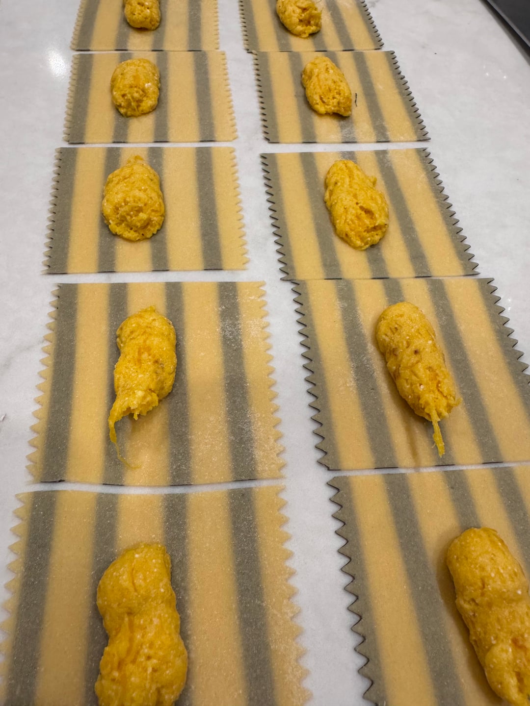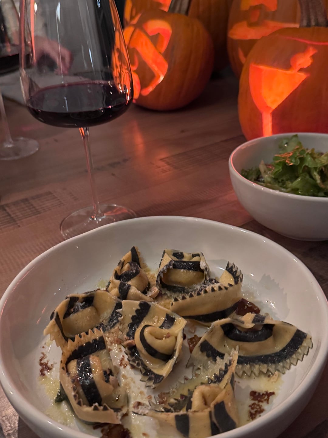 Usually make pumpkin ravioli for our annual pumpkin night but decided to try something different. Served with brown butter, sage, hazelnut, parm, a little balsamico.