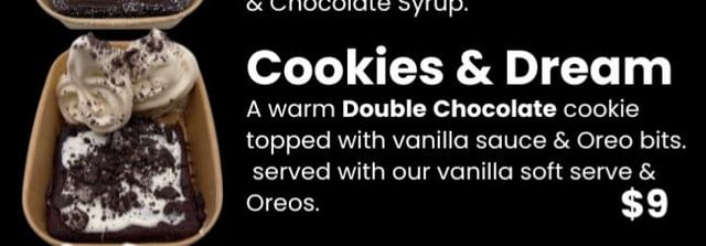 Went out and had this (pic 1). It's a double chocolate cookie with frosting and Oreos pieces, plus a side of vanilla ice cream with dusted Oreos.
