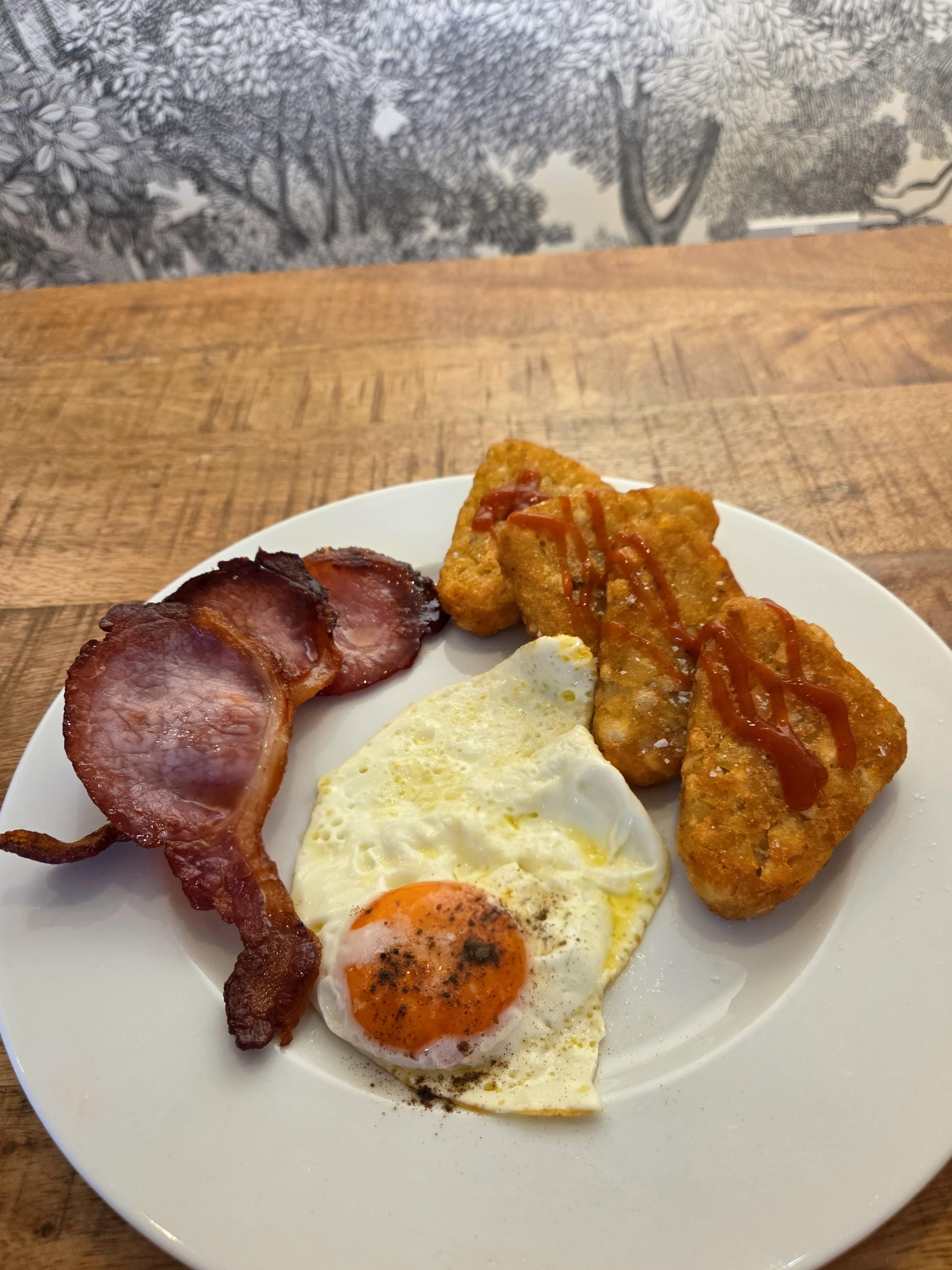 Bacon, made crunchy in the oven. Hash browns. A lovely, local organic egg. Hot sauce! 🌶️I like my egg fully cooked through on the white and and runny/fudgy in the yolk.by Poo_Poo_La_Foo 1 Comment AllButterfly100 6 days ago I see a pig snout 🐽