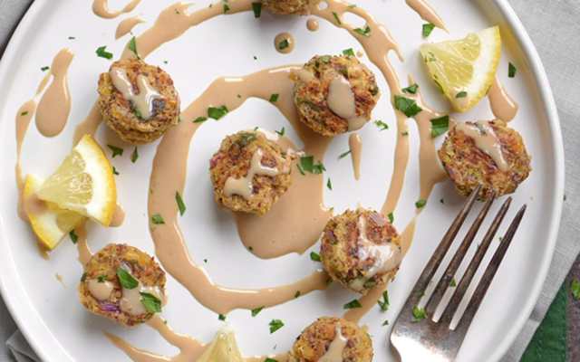 14. Baked Falafel Balls With Flax and Tahini Sauce