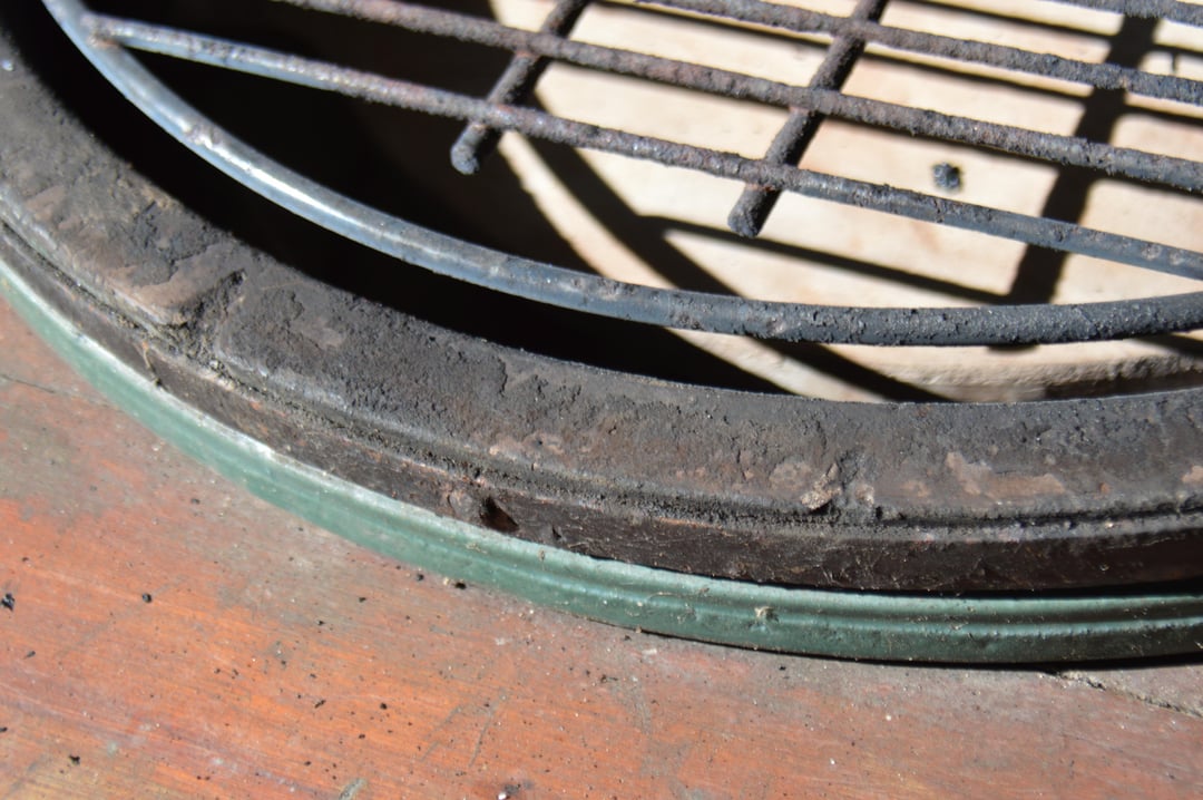 Fifteenth picture is a small drop of the outside glazing that fell on the base before firing! I tried scraping it off while cleaning, then after vacuuming realized what it was. TOUGH little thing!! Also, I have read that every BGE has cracks/crazing in the outside finish. Full stop. Several people have claimed to have never seen a working egg that wasn't. This Large has absolutely no crazing, and has seen extreme temps inside.
