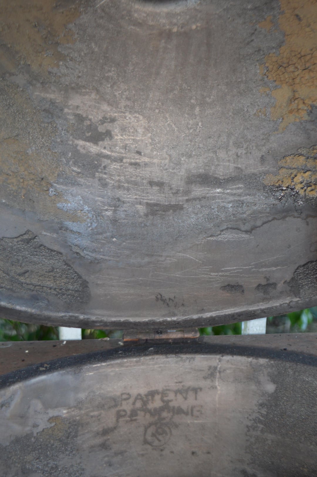 Seventh picture is the common serial number area on the lid and back wall cleaned. Thoroughly. Note the "patent pending" and "19" stamp in a circle. They are not indented, or raised up. Almost like they were stamped with glazing compound? Super heat resistant ink?