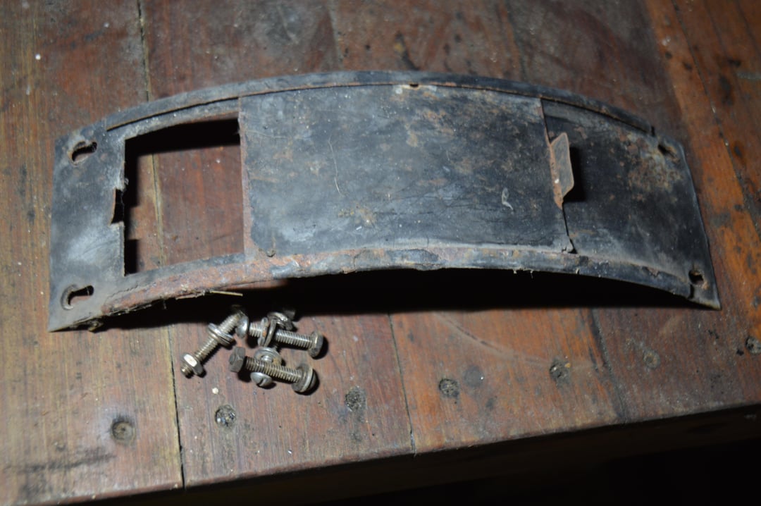 Sixth picture is the original lower vent I took out. No room for, or appearance of remains a screen. All four nut and bolt assemblies came off easily after 25+ years!