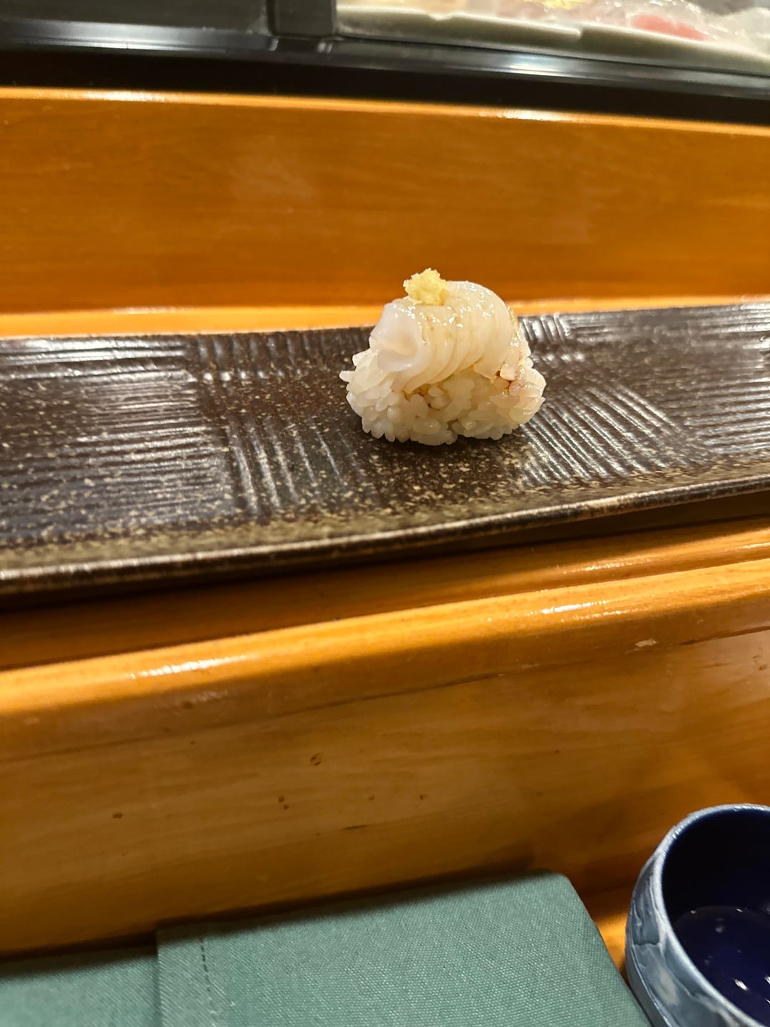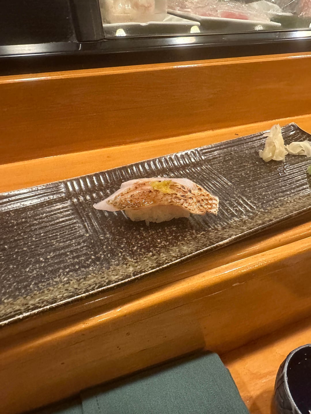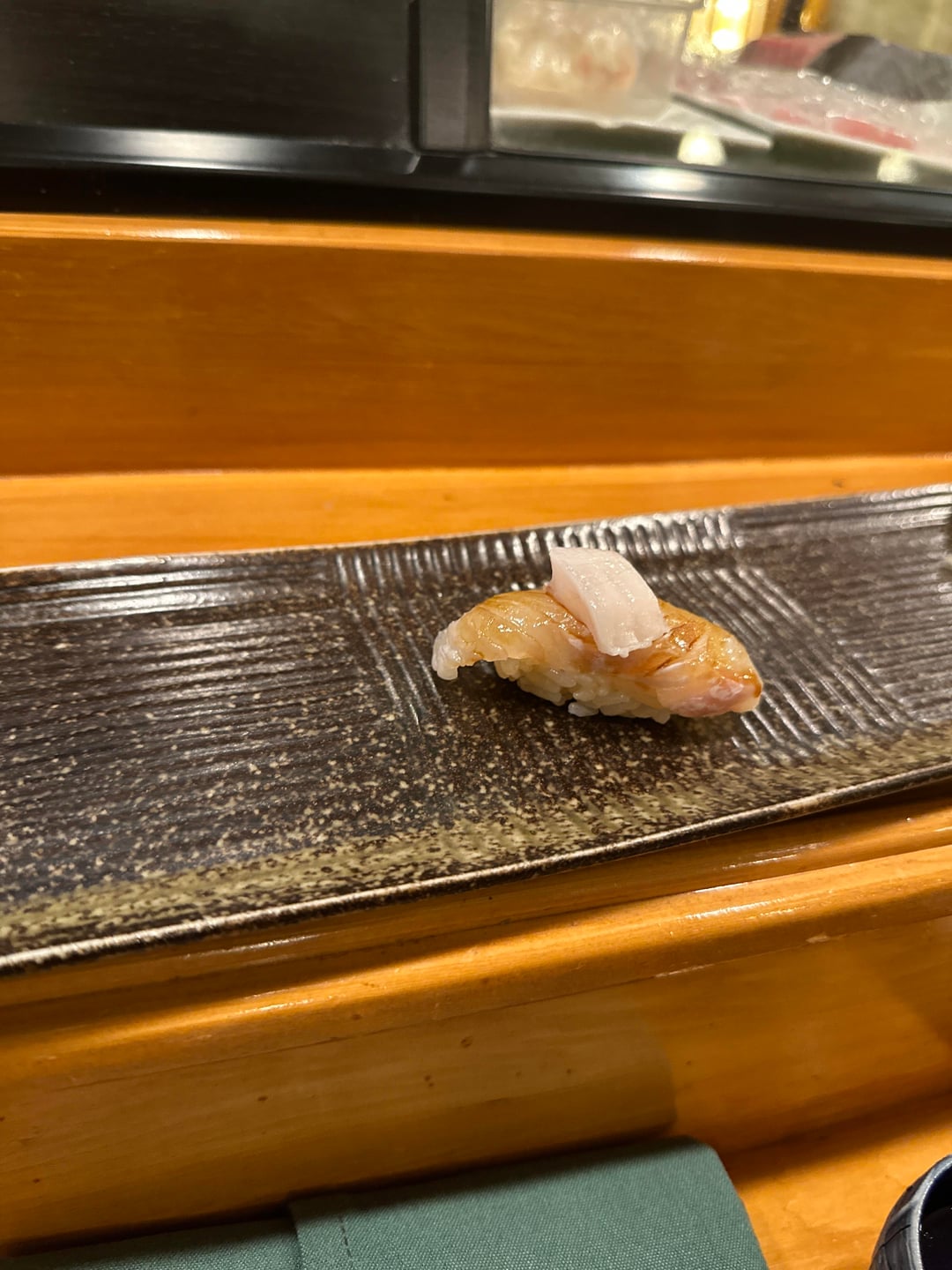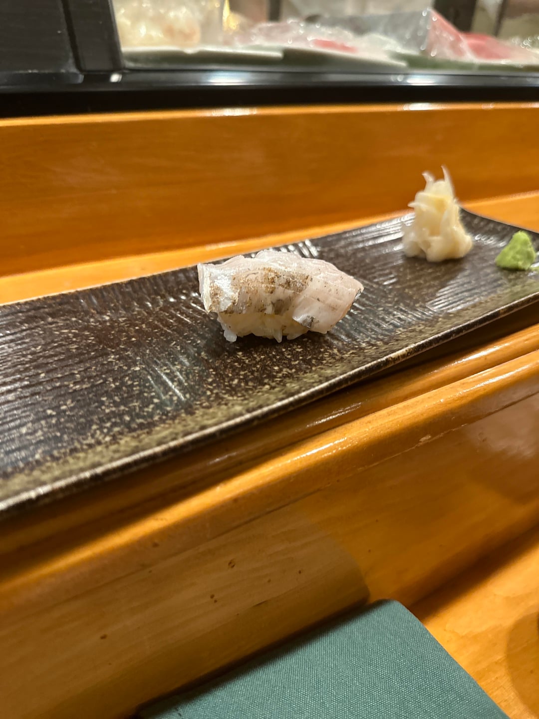 3. Katsuo from shizuoka w momiji oroshi, looks to have been pre grilled and rested. Clean tasting – katsuo, at least the ones that have made it here, have been kinda lean just given the more warm weather in Japan. The water in Japan does seem to have finally gotten pretty cold this week though so I imagine going forward we’ll start seeing fattier specimen. This one was eh but I didn’t hate it