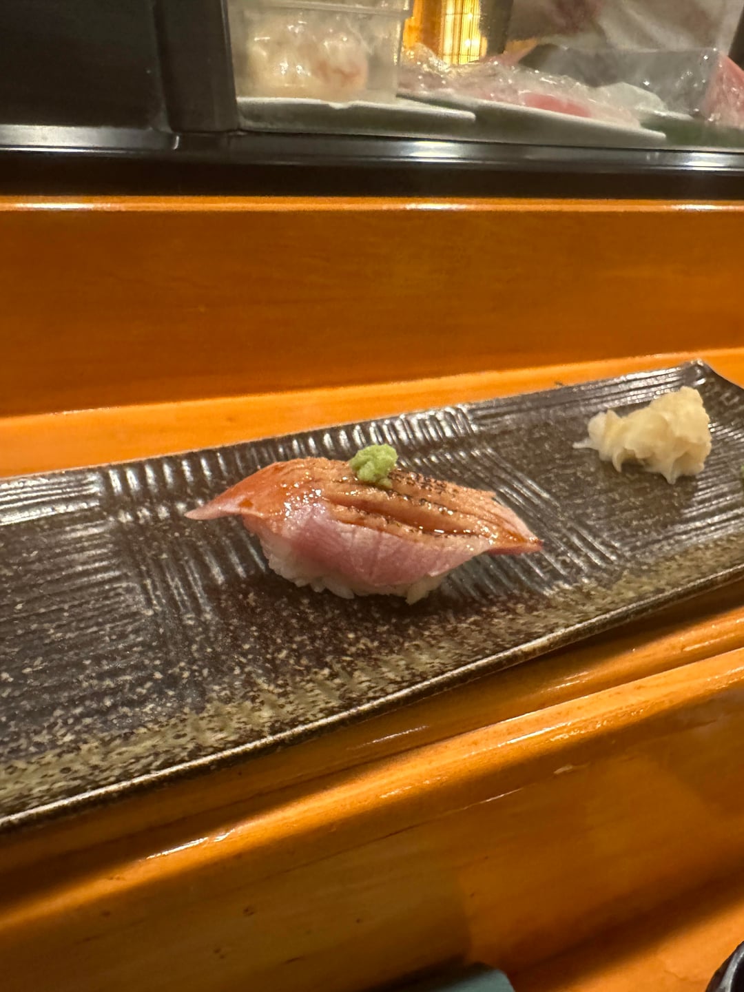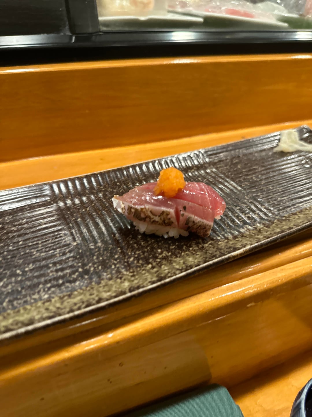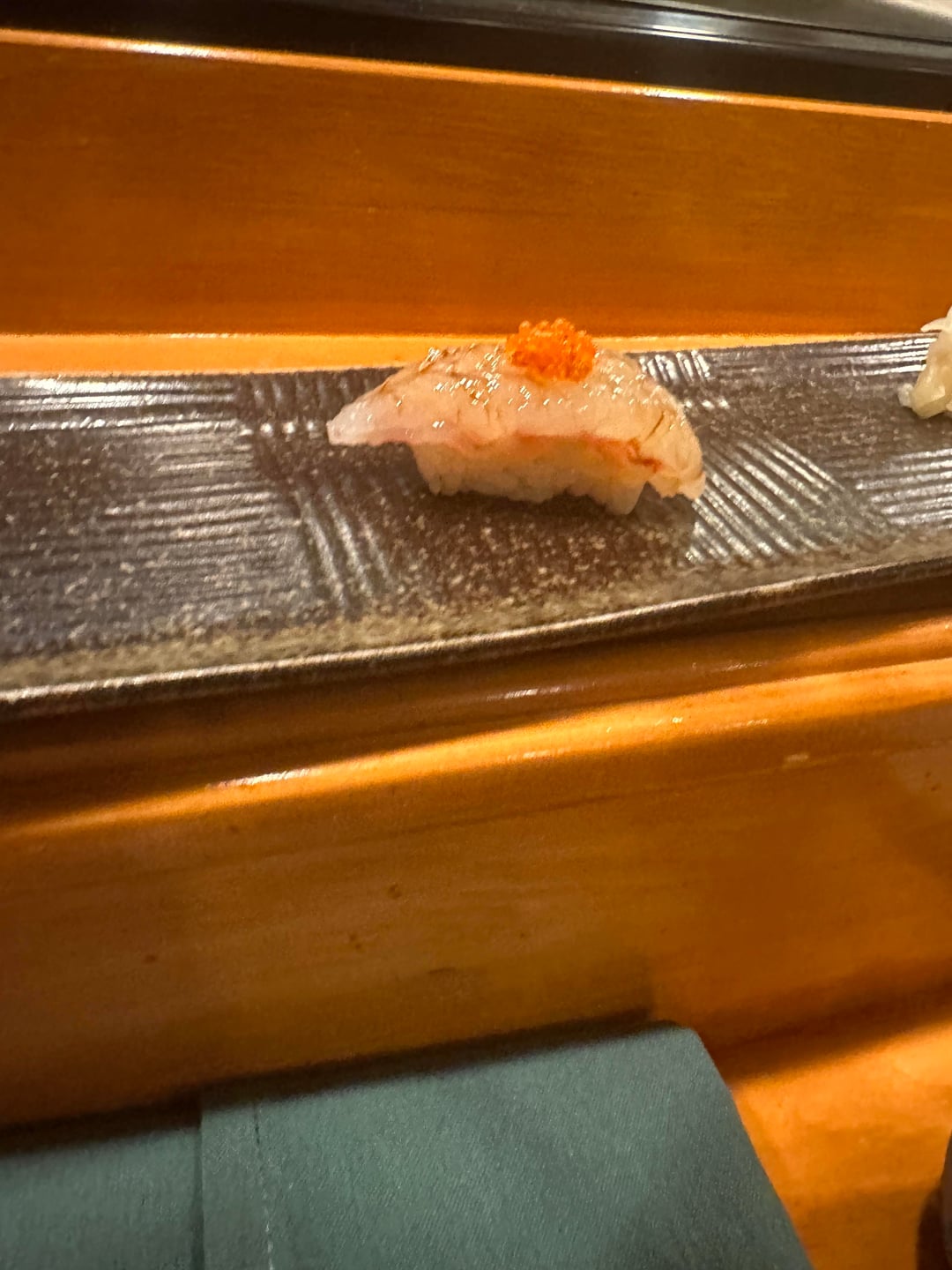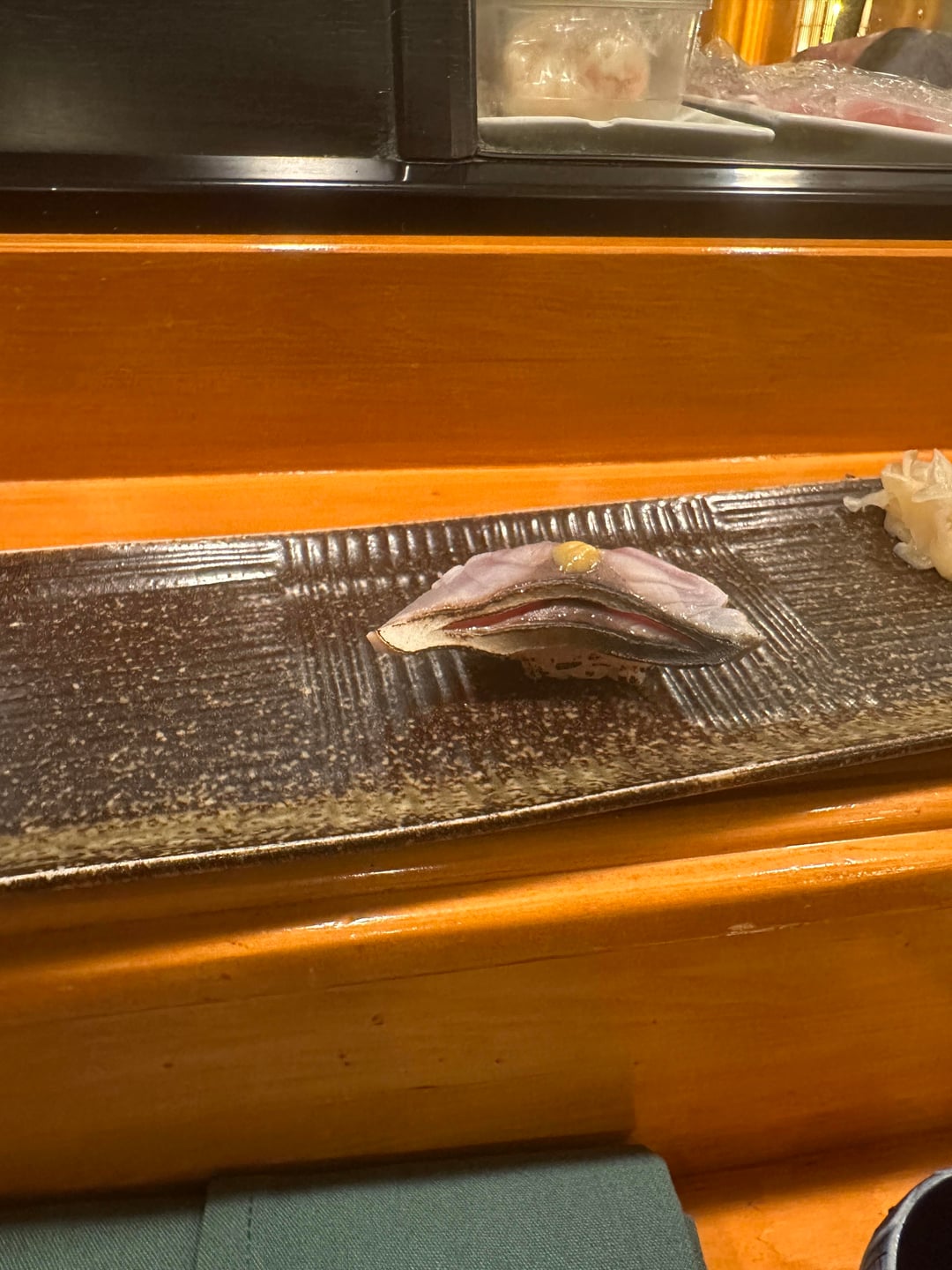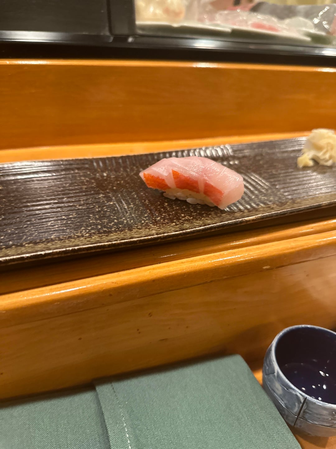 3. Katsuo from shizuoka w momiji oroshi, looks to have been pre grilled and rested. Clean tasting – katsuo, at least the ones that have made it here, have been kinda lean just given the more warm weather in Japan. The water in Japan does seem to have finally gotten pretty cold this week though so I imagine going forward we’ll start seeing fattier specimen. This one was eh but I didn’t hate it