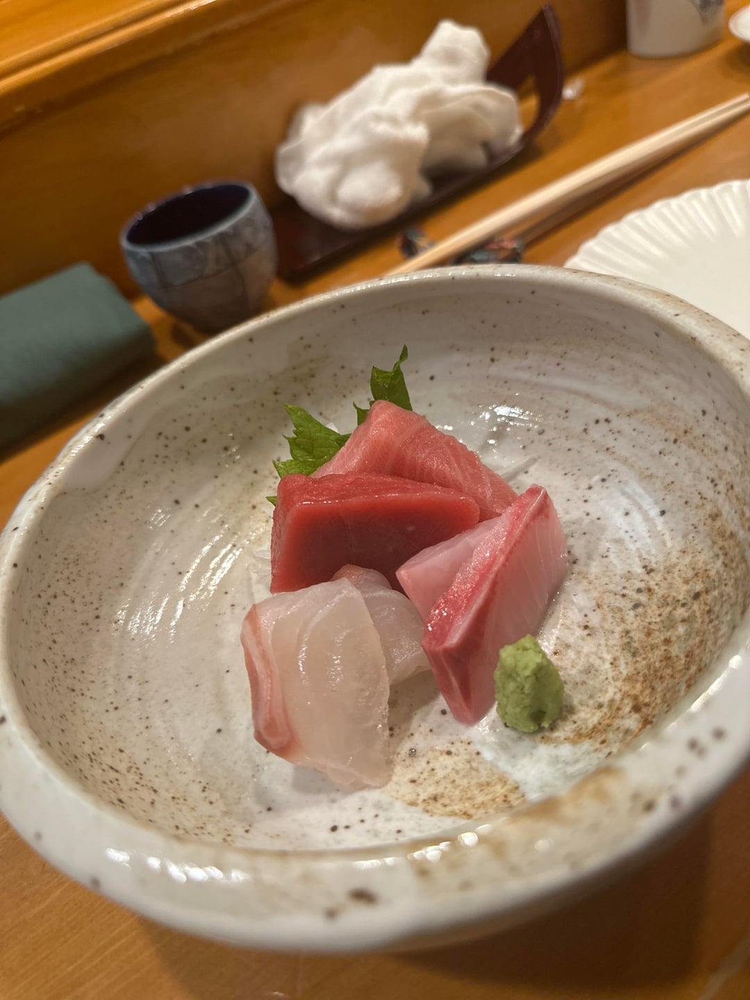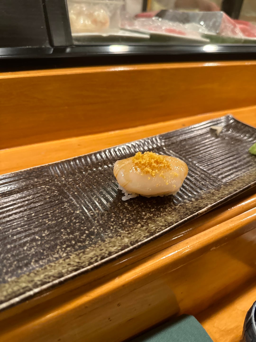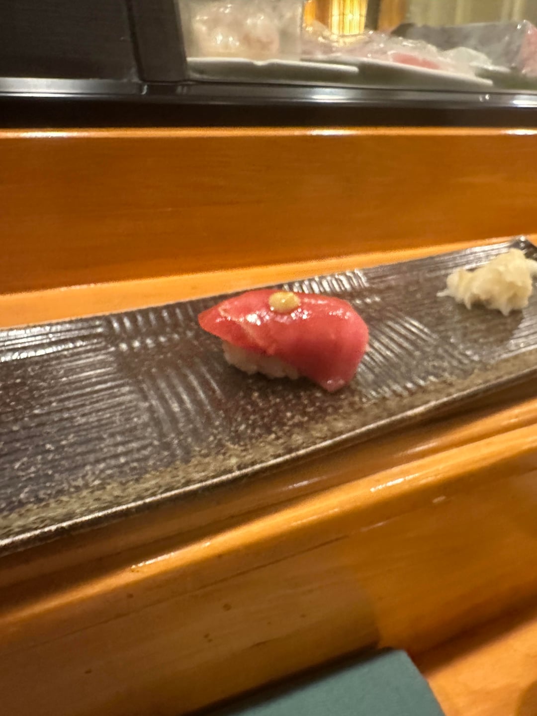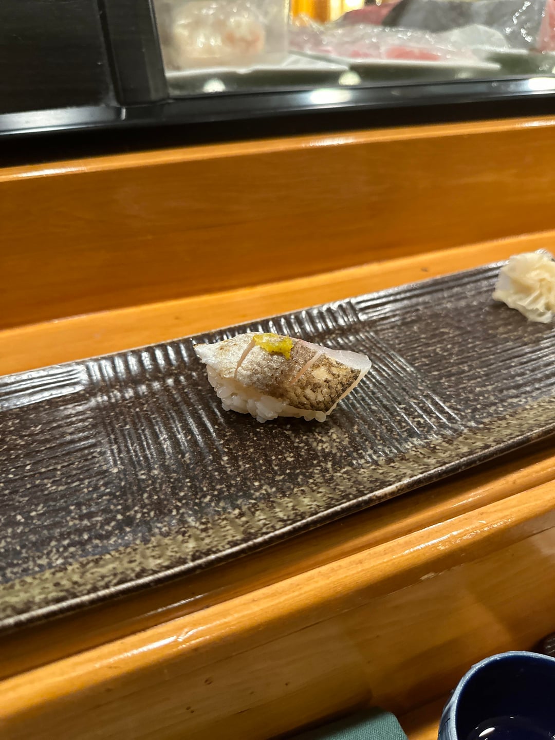 3. Katsuo from shizuoka w momiji oroshi, looks to have been pre grilled and rested. Clean tasting – katsuo, at least the ones that have made it here, have been kinda lean just given the more warm weather in Japan. The water in Japan does seem to have finally gotten pretty cold this week though so I imagine going forward we’ll start seeing fattier specimen. This one was eh but I didn’t hate it