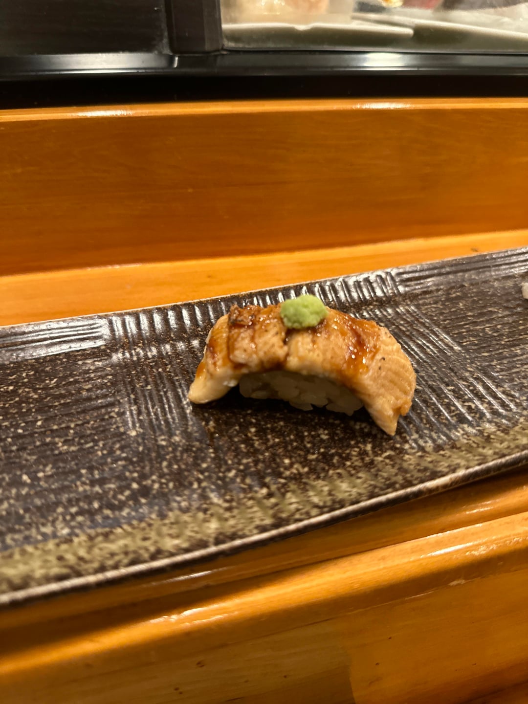 4. Anago w loose tsume made from Anago stewing liquid and bones, actually really good – one of the better nigiri of the night. Just wish the tsume was thicker and it’d have honestly been the best