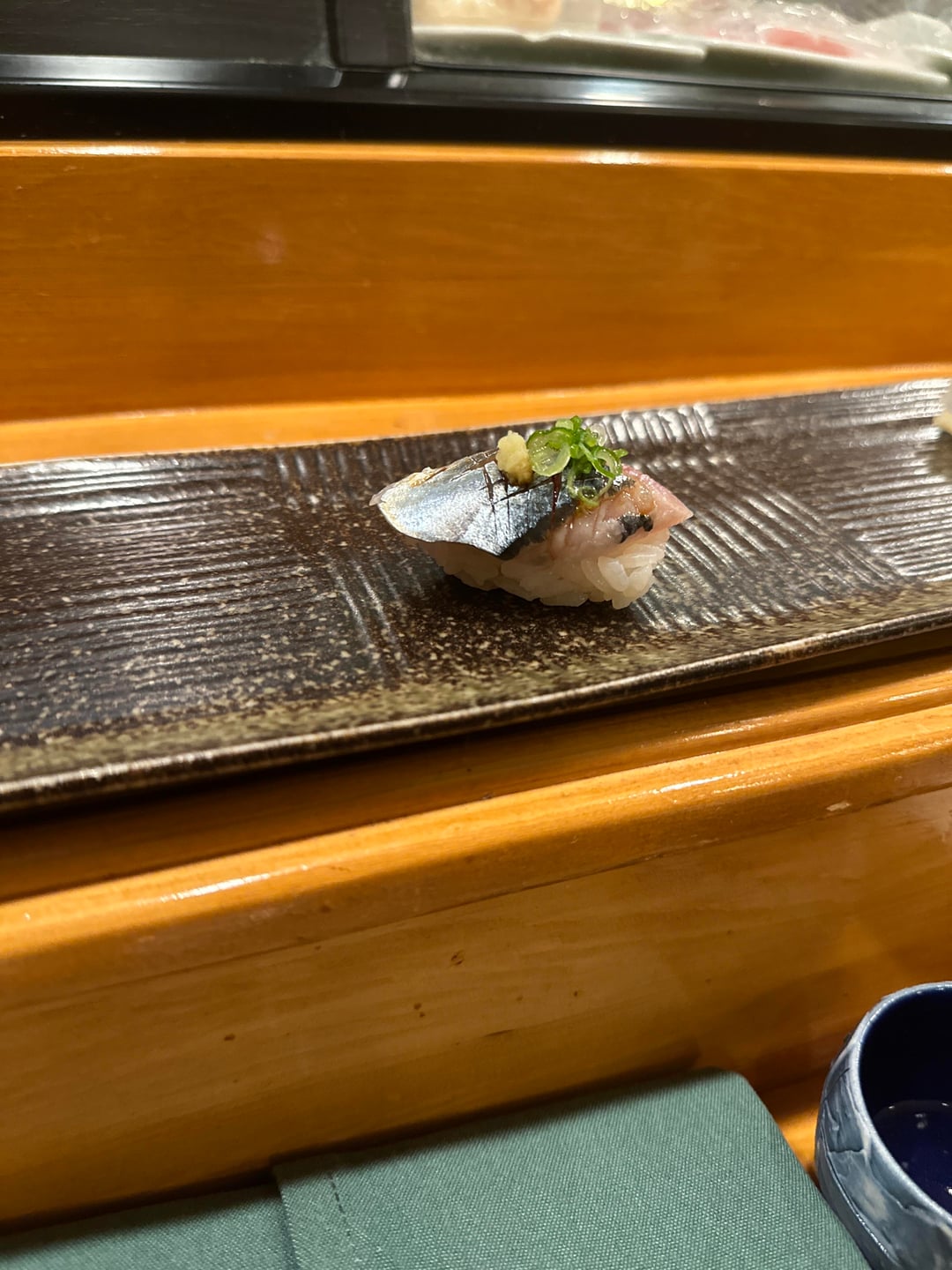 1. Aburi Saba – half standard shiojime and sujime time for more raw/nama fishy taste. Topping w karashi and w wasabi. Fish had come in earlier that day/the day before I believe, honestly didn’t taste the standard hikarimono flavour he was going for, the karashi really ran away with it