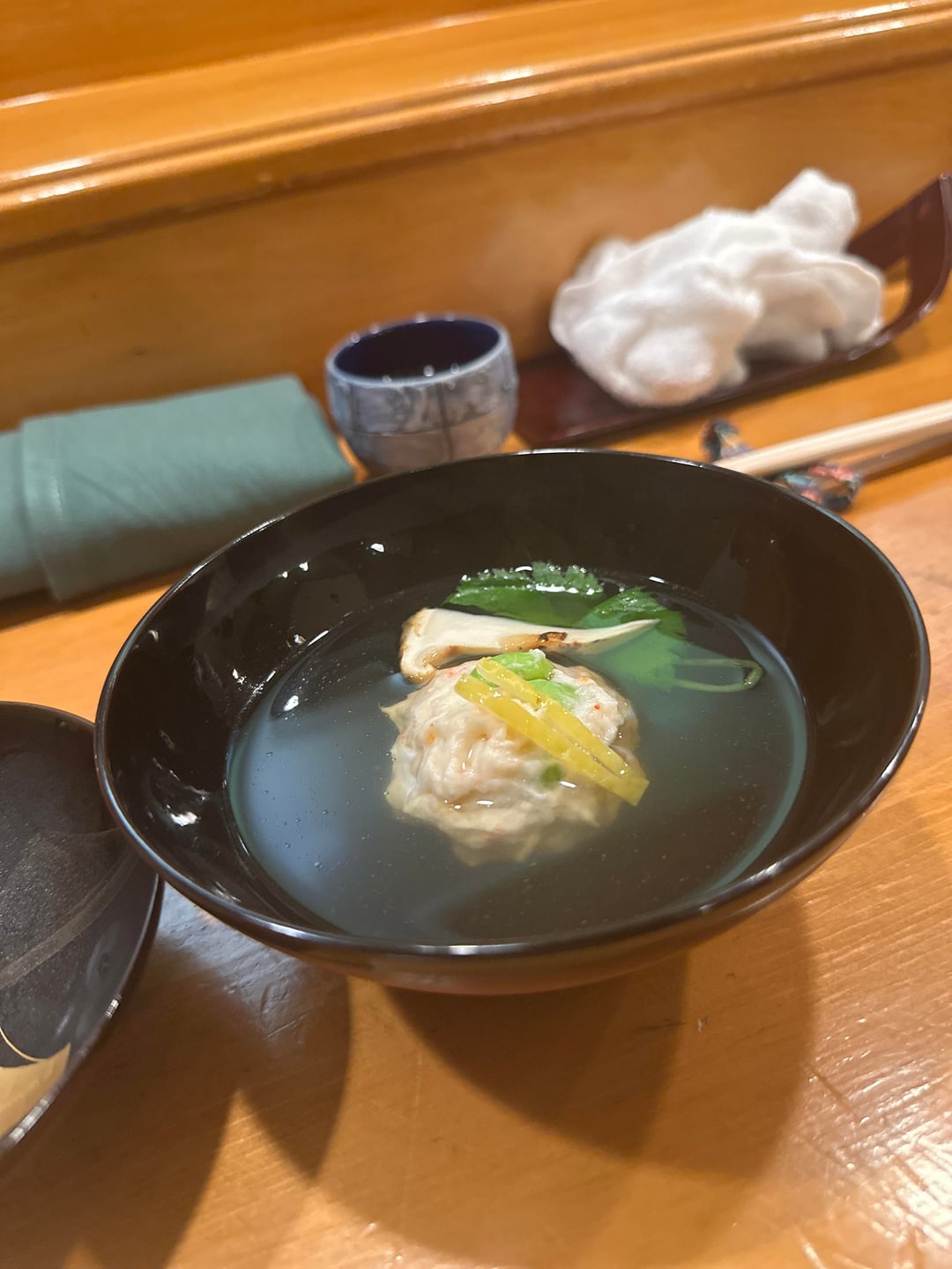 2. Owan course – clear dashi (standard kombu + katsuobushi), matsutake and ebi shinjo w edamame. Nice aroma, dashi was well done but pretty strongly flavoured – ymmv with that. Shinjo was alr – edamame dominated the bites it was in so I didn’t get a lot of the sweet meatyness from the shrimp I was hoping for but it was constructed well and cooked properly unlike similar at Shin