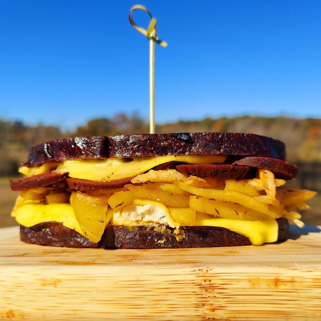 Caramelized apples, Renegade sopressata, and Rebel truffle chèvre with French green peppercorn mustard, Chao slices, and crispy onions on pumpernickel rye.by slh2c 3 Comments Dooleyz 4 weeks ago Erm….. wow. gusour 4 weeks ago Gimme that. Charming-Kale9893 4 weeks ago Salivating