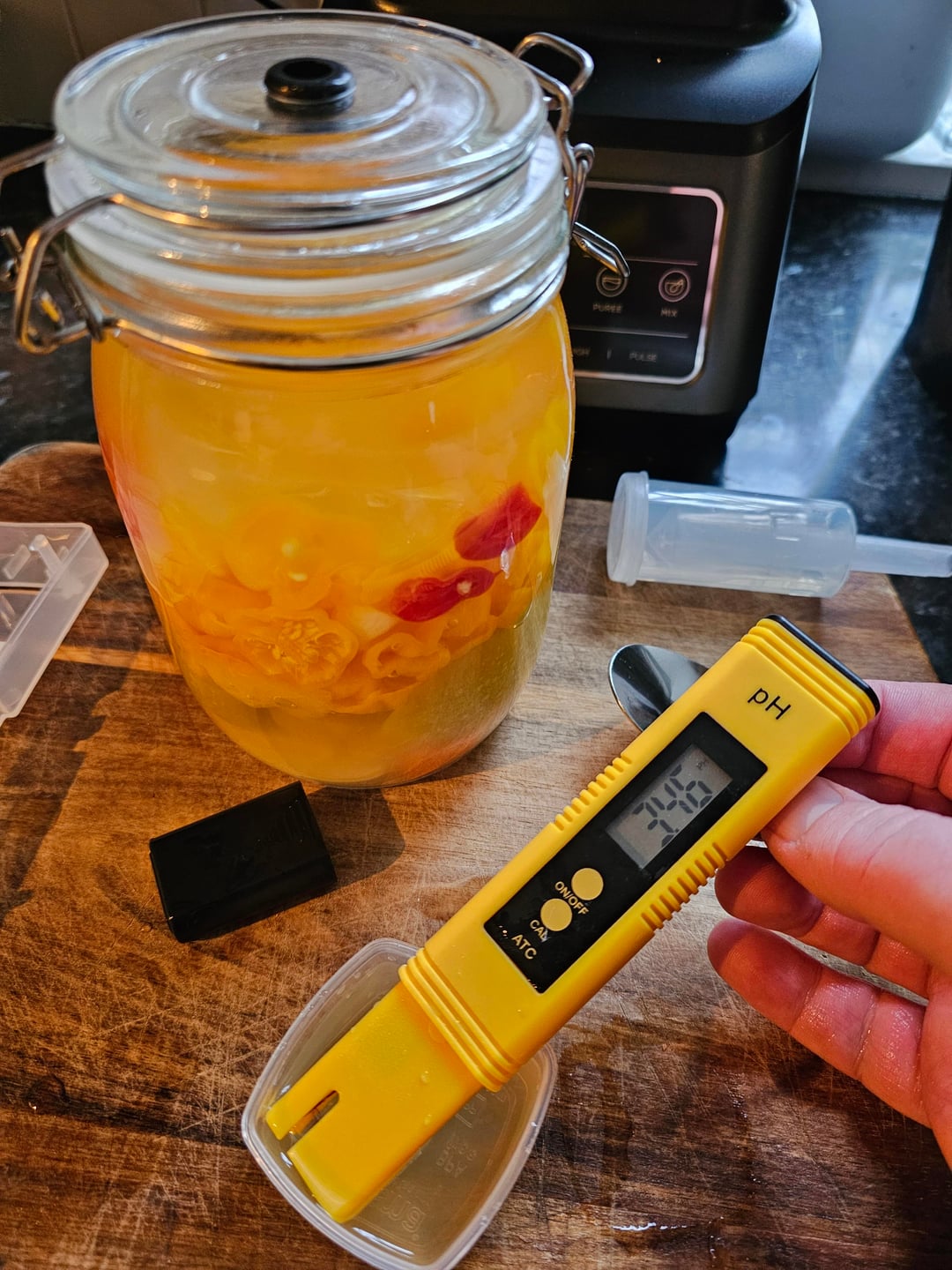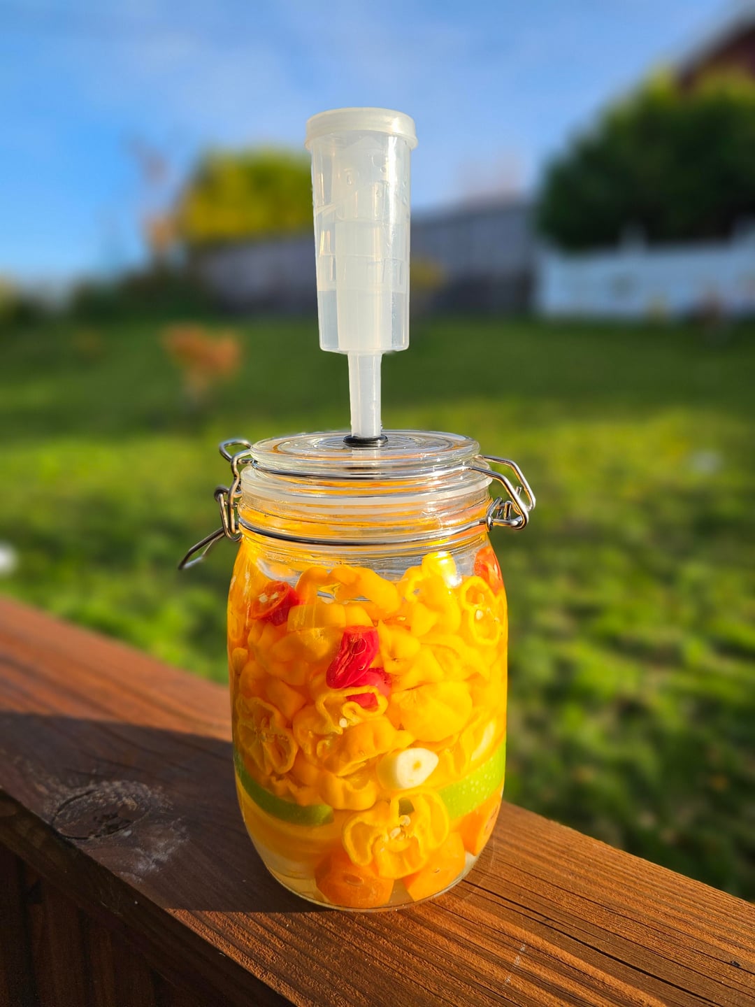 Yellow t-Rex, mango, green apple, carrot, sweet pepper, ginger and garlic. Added a few habs before blending. Fermented 3 weeks. by bollaP 2 Comments DeadicatedBRONX 1 week ago Looking good! Where did you get the fermentating bale lid jar? redditnym123456789 1 week ago Looks beautiful. Would.