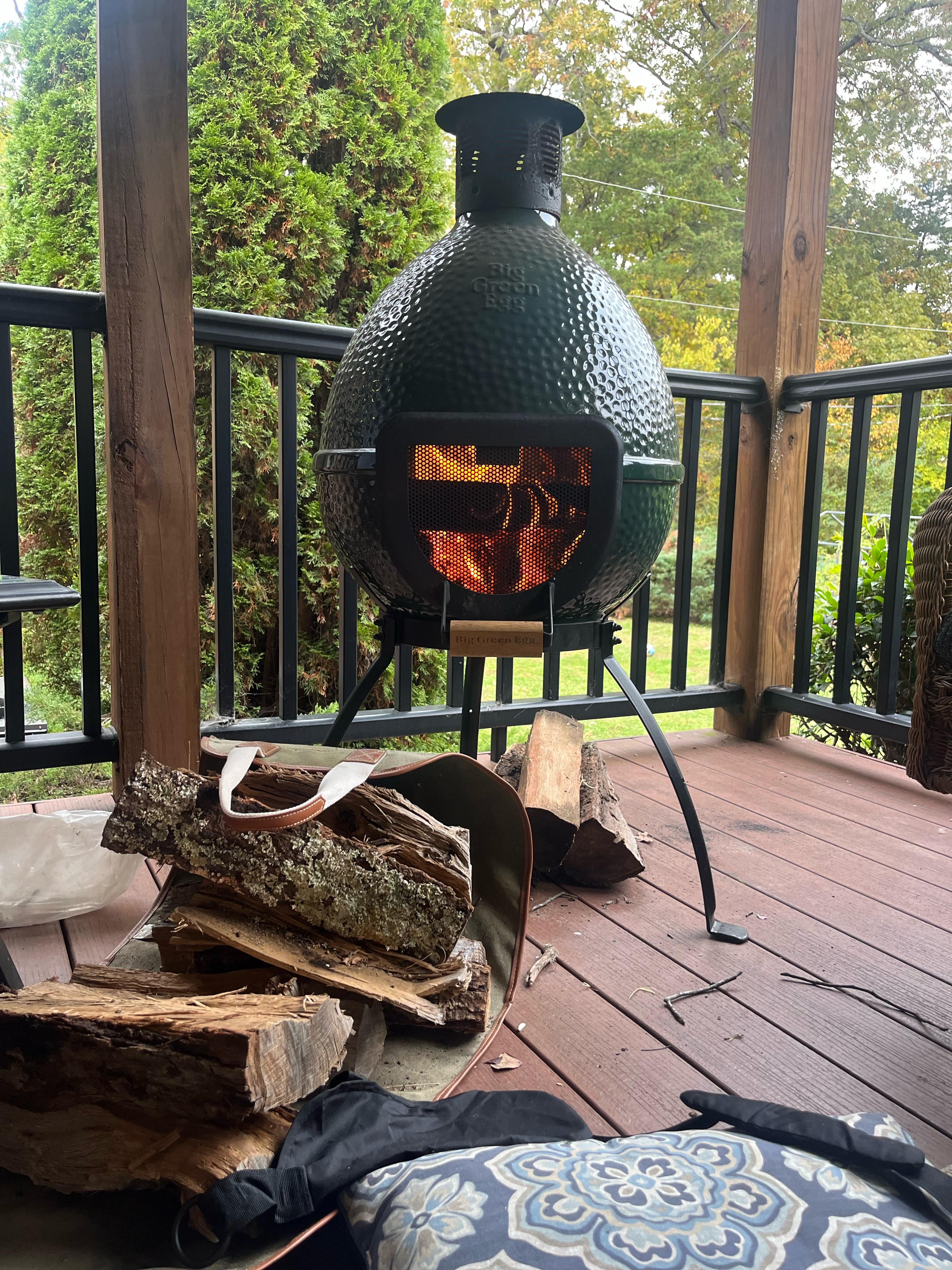 2nd season with this bad boy. Love this thing. It does put out some heat after about 30 minutes it radiates heat all around it. But it’s also nice early in the season for just the ambiance of a live fire.