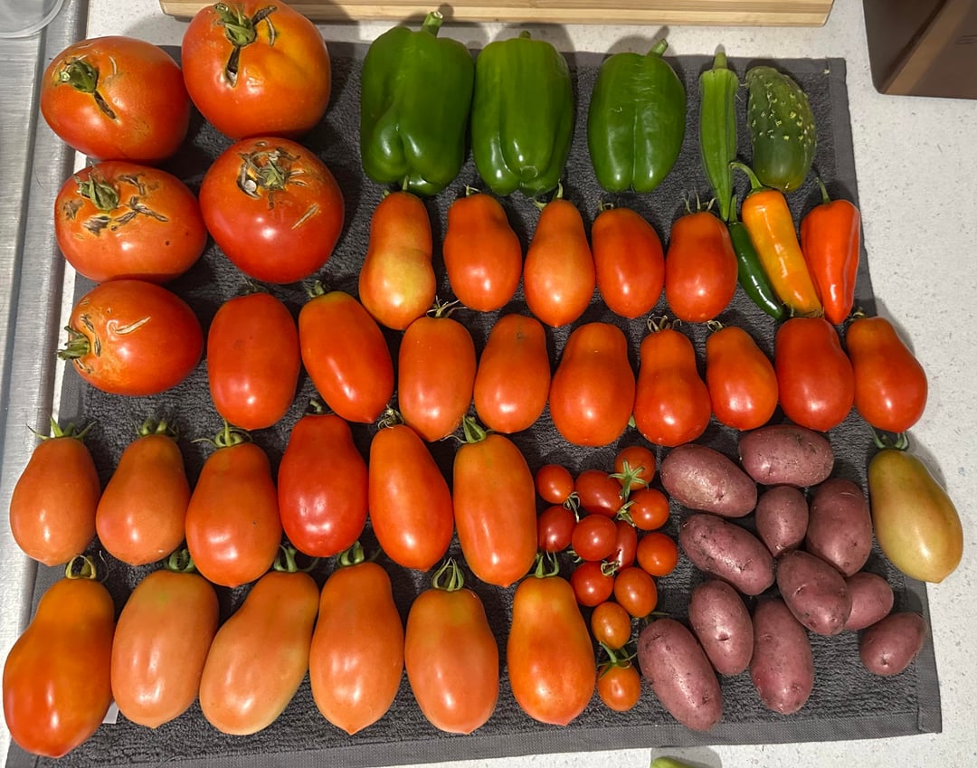 Hi everyone! I’m pretty new to both gardening and Reddit, so hopefully you’ll take it easy on me lol. Just wanted to show off what my small garden was able to produce this year. I learned a ton in the process and look forward to next year! Hope you enjoy!
