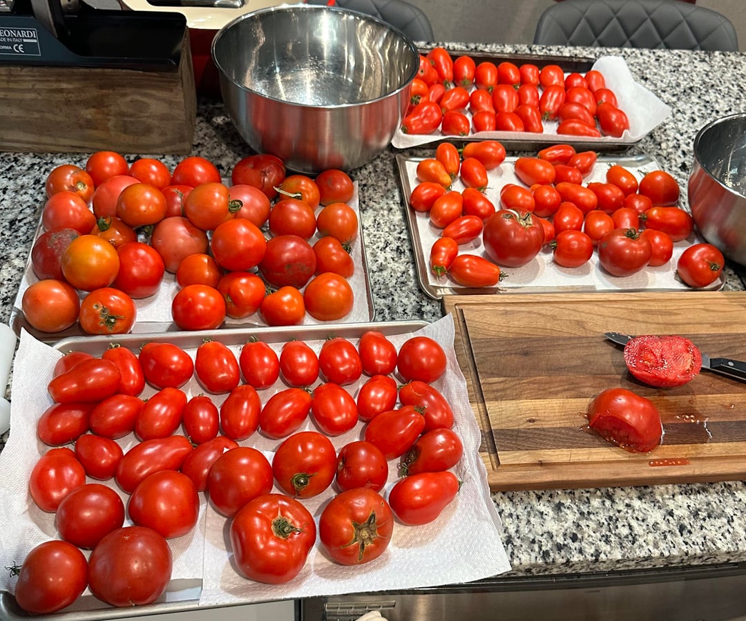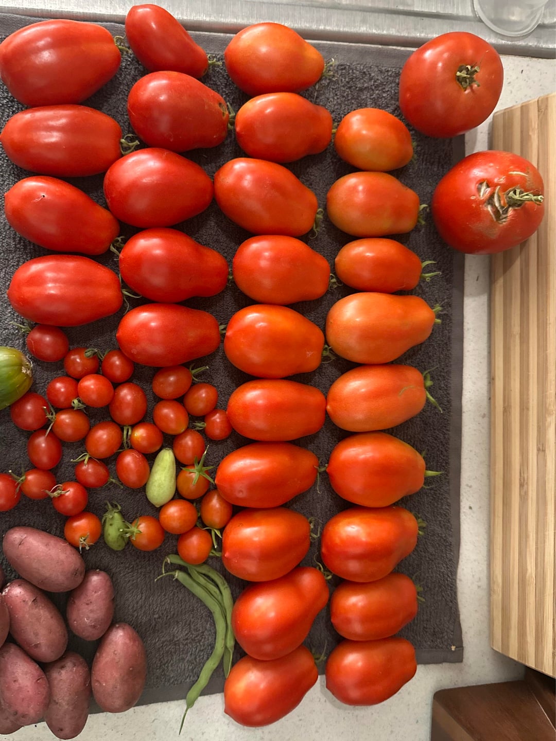 What a great harvest! Very nice! Beautiful tomatoes and peppers!