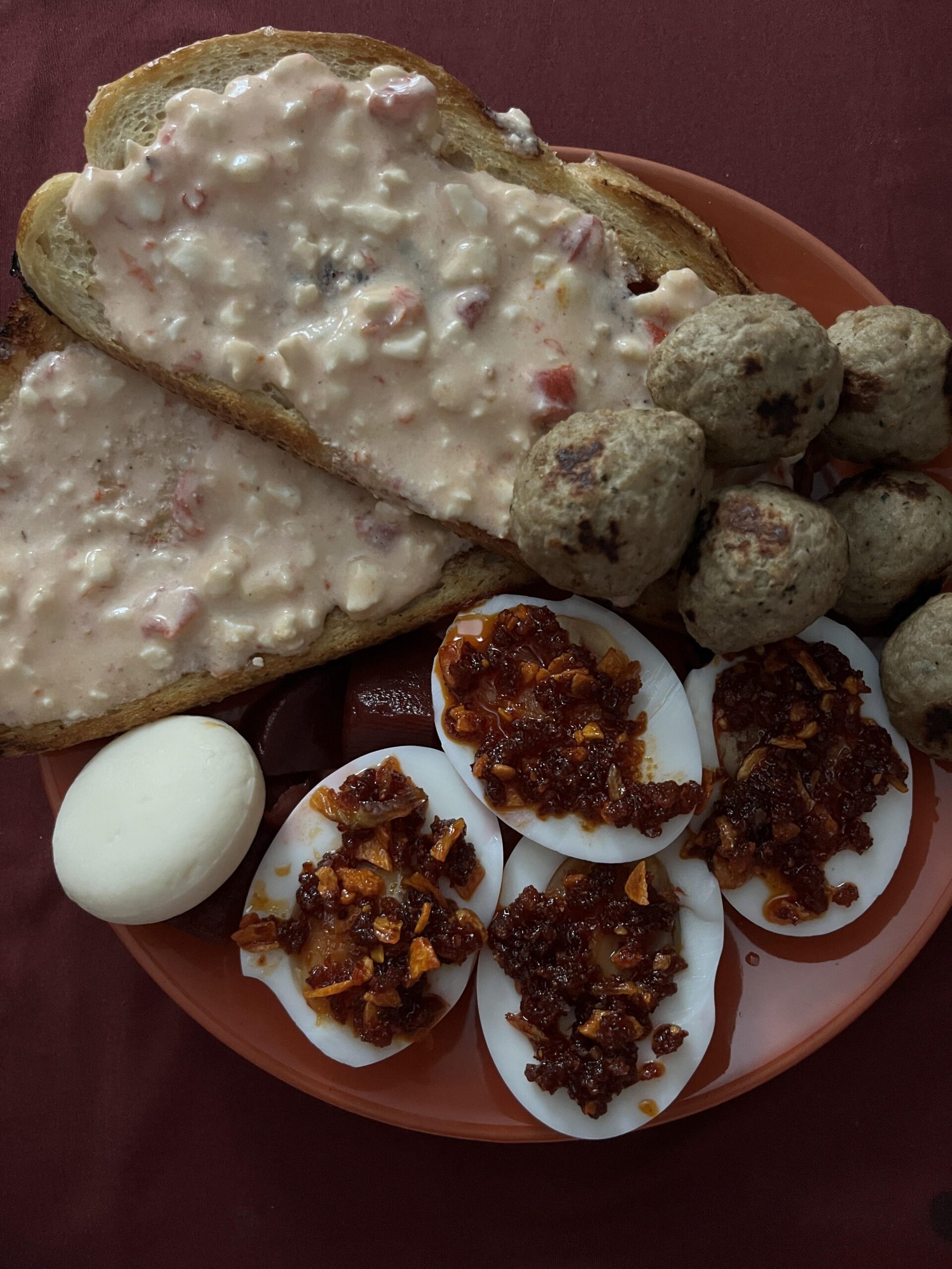 Got 40g of protein for the plate and full as hell so whatever you can judge me a little lol. I love making random platters. I wanna hear the weirdest or most unlikely but delicious volume combos you’ve come up with, go!: