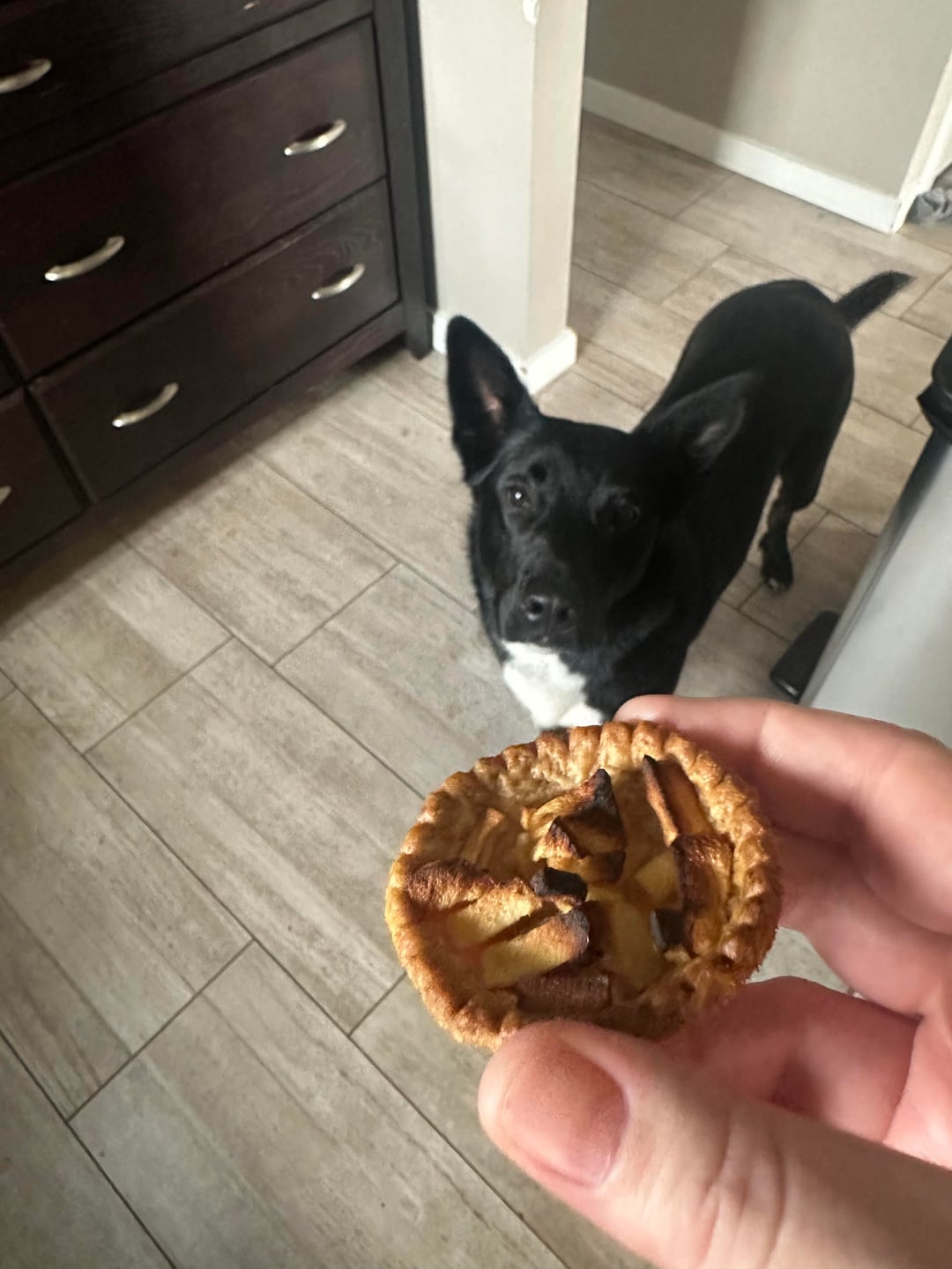 Apple Pie: I had leftover tarts! I peeled and diced a macintosh apple. Add 1 tbsp each of brown sugar and flour, 1 tsp each of cinnamon and lemon juice. Toss to coat, put about a tbsp of filling in the tart and sprinkle with streusel topping. Bake at 400 for 25ish minutes.