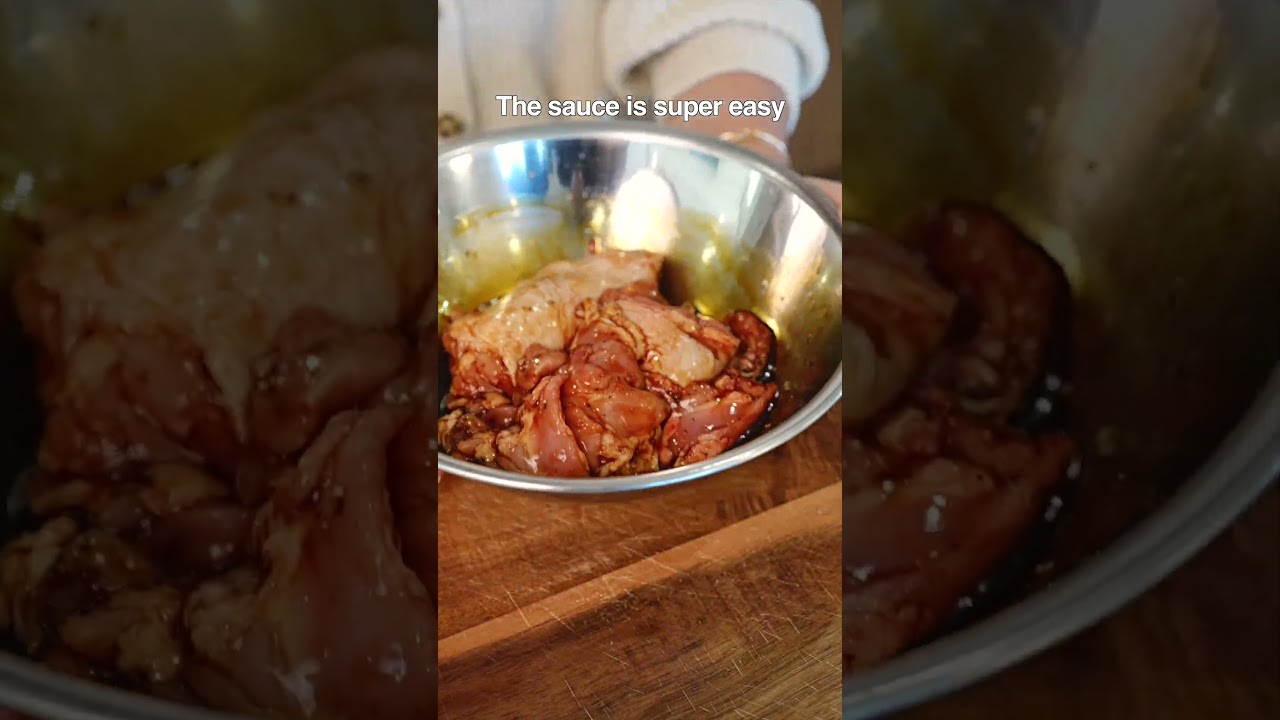 Super easy Thai inspired chicken rice bowl. Marinate chicken thigh with soy sauce, oyster sauce, black pepper, and honey. The sauce is super easy. Mix together garlic, tyra chili, fish sauce, water, sugar, and lots of lime juice. Mix well. Then add in the cilantro. Pan fry the chicken for 6 to 7 minutes on each side or until golden brown. Now look at
