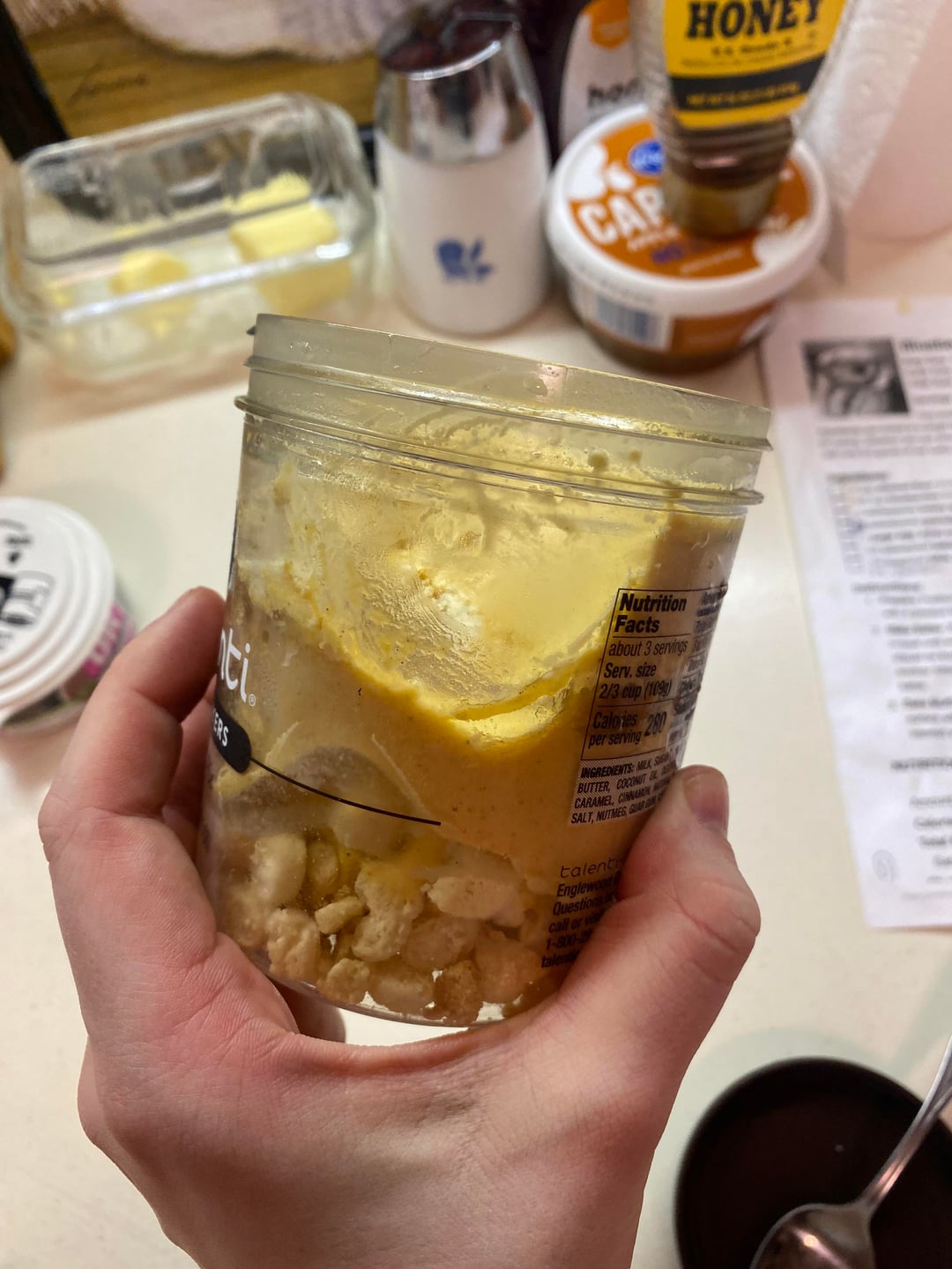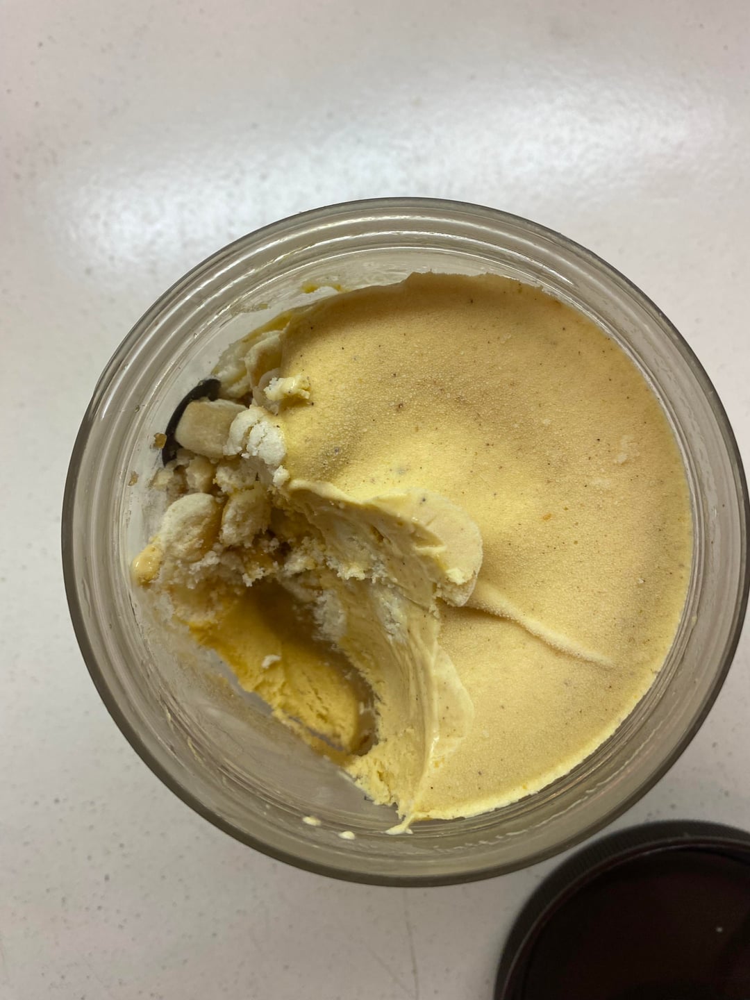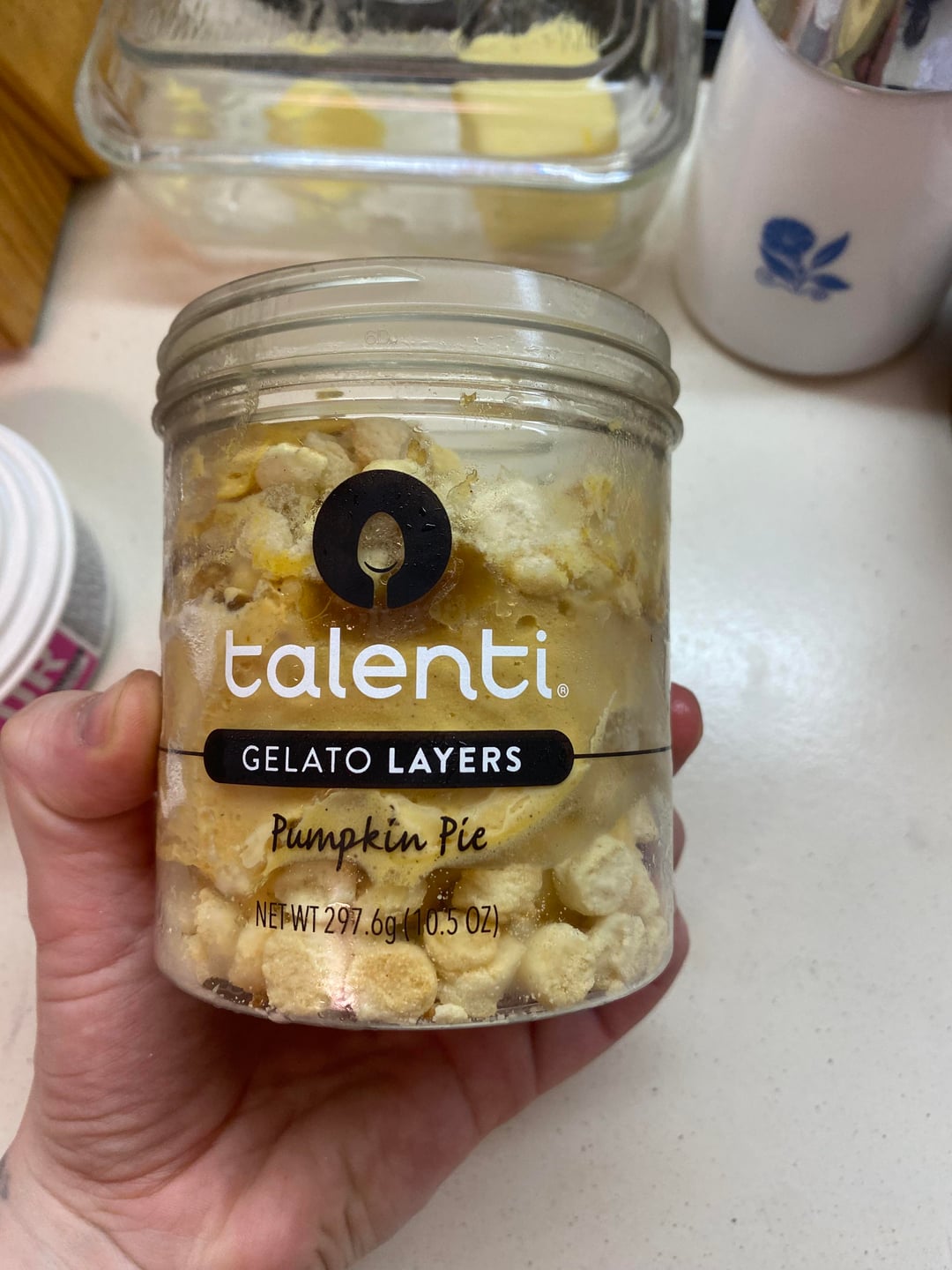 but the taste-phew!! this is crazy delicious i almost forgot how empty it felt to me lol. If you love pumpkin pie you will love this. like it really tastes like a slice of pie in gelato form. the pie crust pieces are the perfect texture and the brown sugar sauce is delicious but still let’s the pumpkin shine. if you love pumpkin you will love this i honestly don’t know what else to say!! 9.5/10