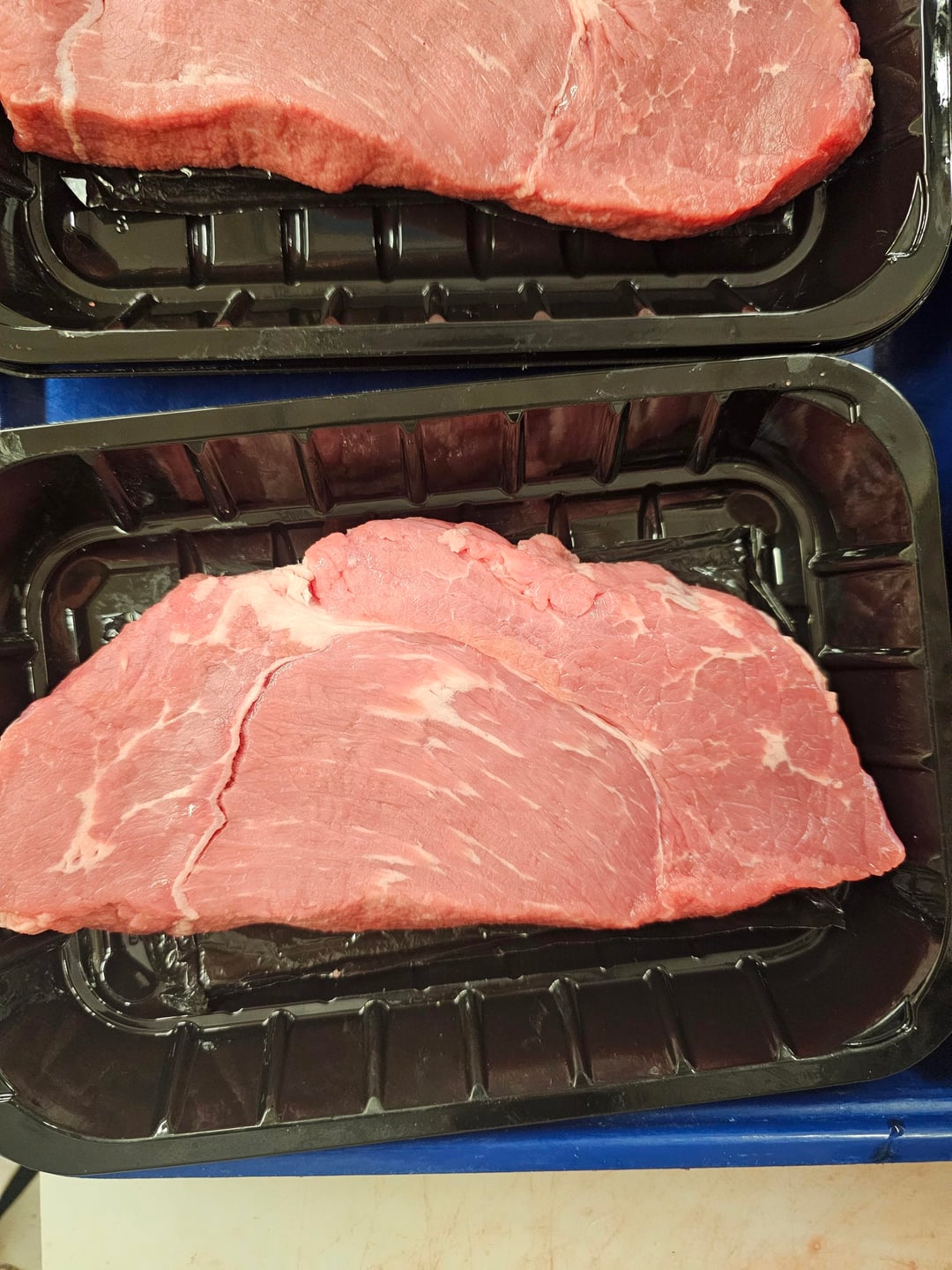 I was cuttina USDA Choice ball tins todav and came across one that had ridiculous inter-muscular marbling. It reminded me of the pictures of A5 Wagyu that I've seen. The 2nd picture is how they normally look: quite lean