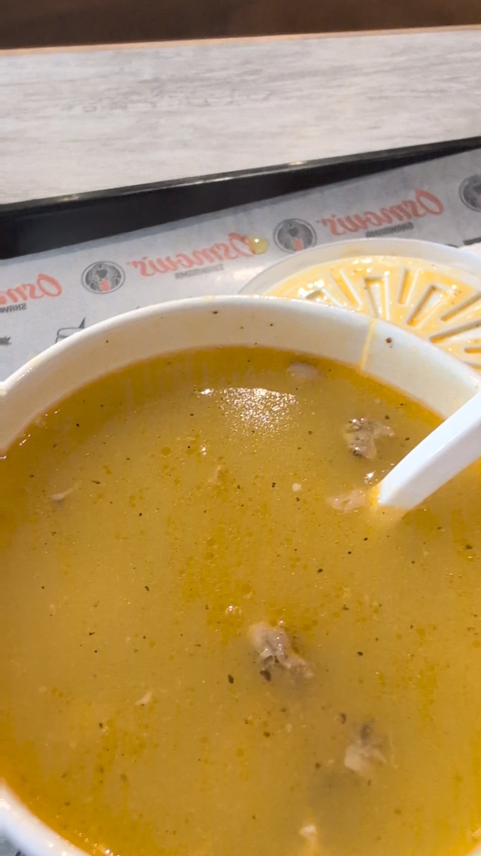 The important thing to note is it is not too salty but very sour. The broth is very sumac and lemon forward. You won't feel as if you consumed a salt lick, but you do feel as if you consumed some lemon juice,that pucker might have you reaching for water