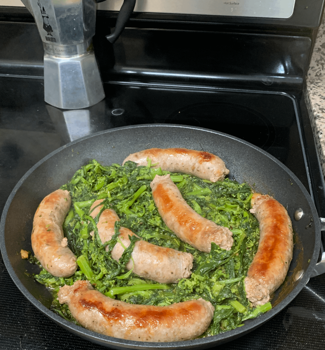 My mother in law makes it with the pasta that looks like little hats — Orecchiette I think.