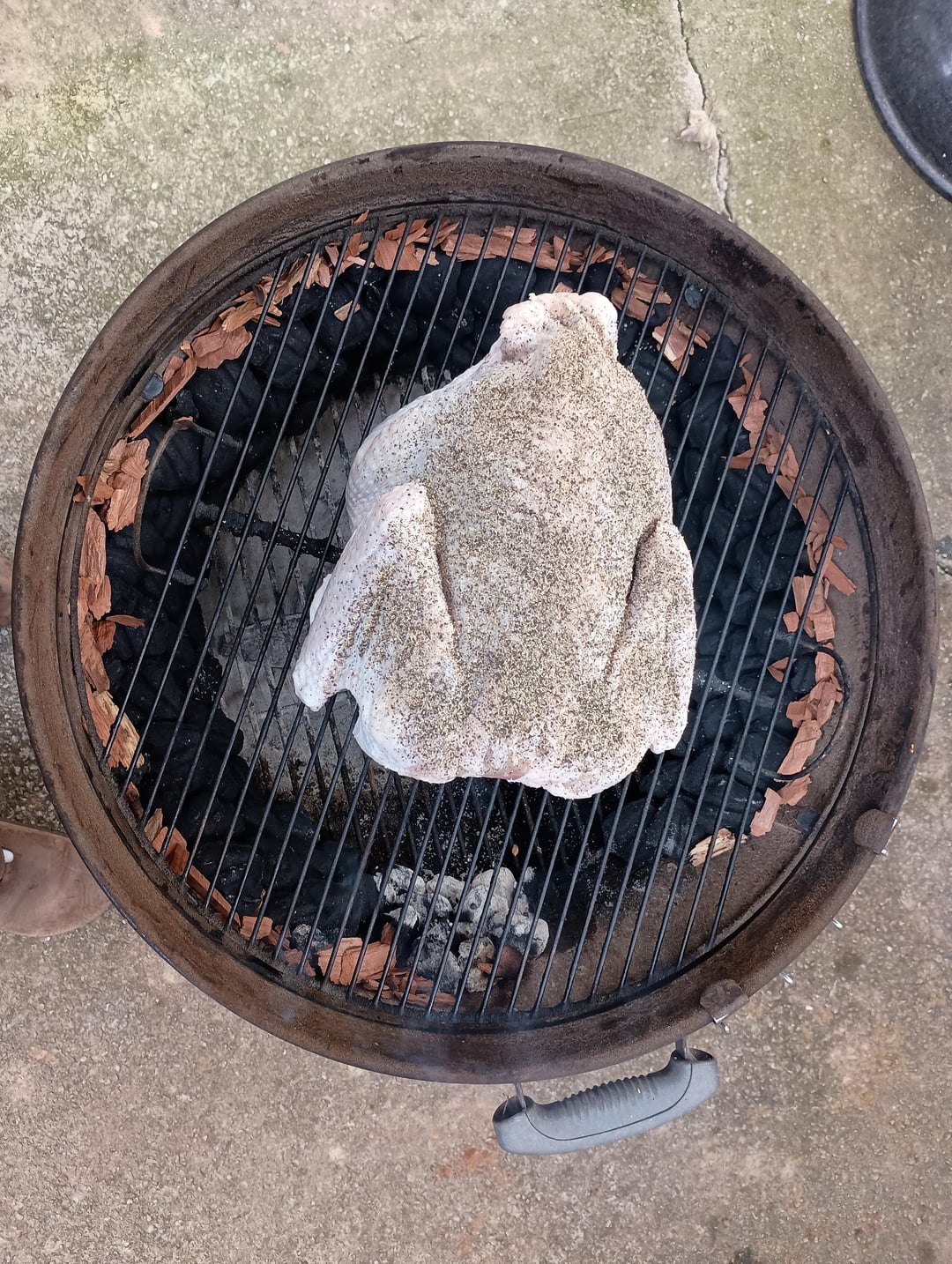 If you’re looking for some tips…I’d remove all the wood chips. Poultry doesn’t really need much, if any added wood. The charcoal will be all you need for flavor. If you were to add any wood, be very sparing and use a fruit wood like cherry or apple. Mesquite is pretty strong and is usually used for beef.