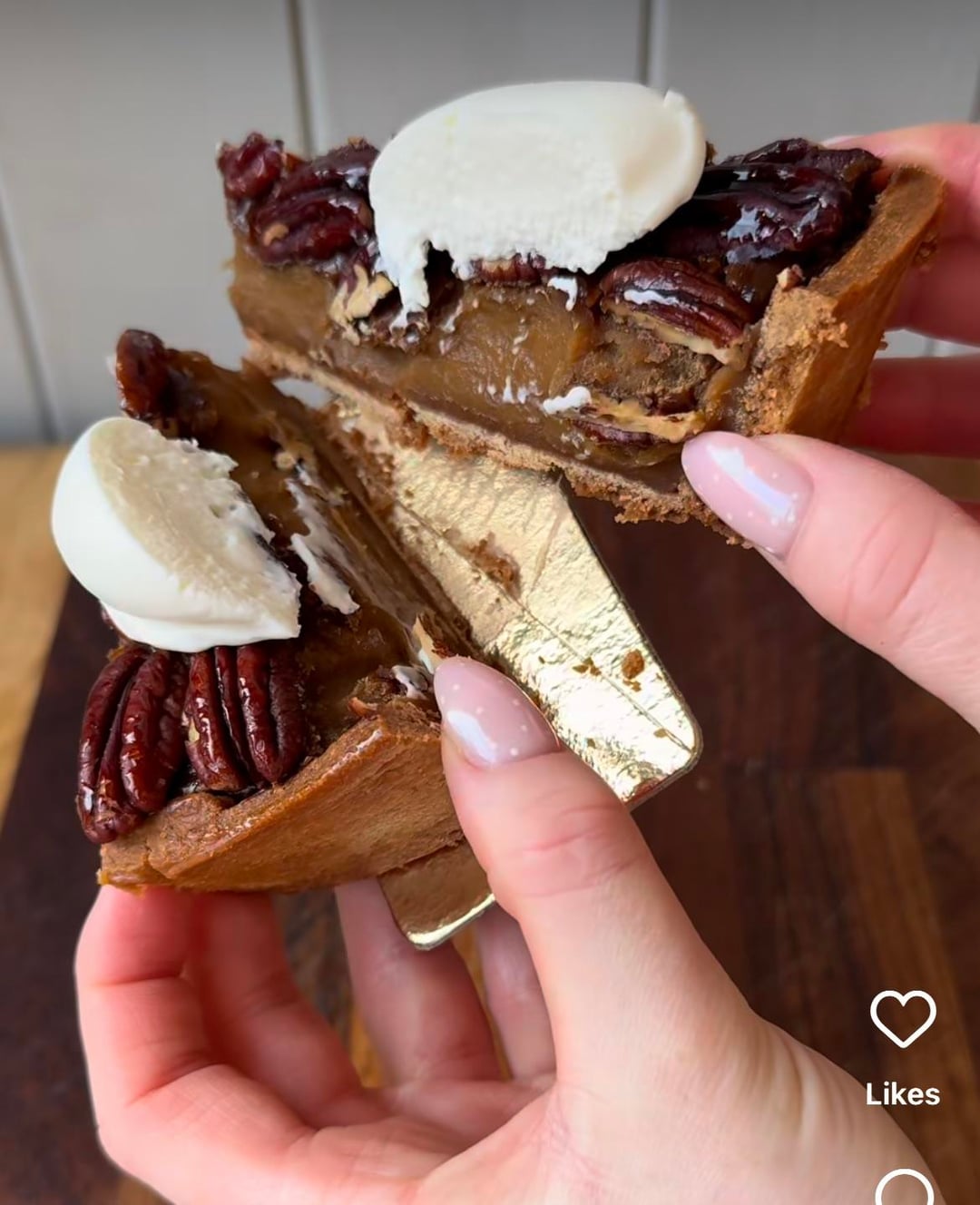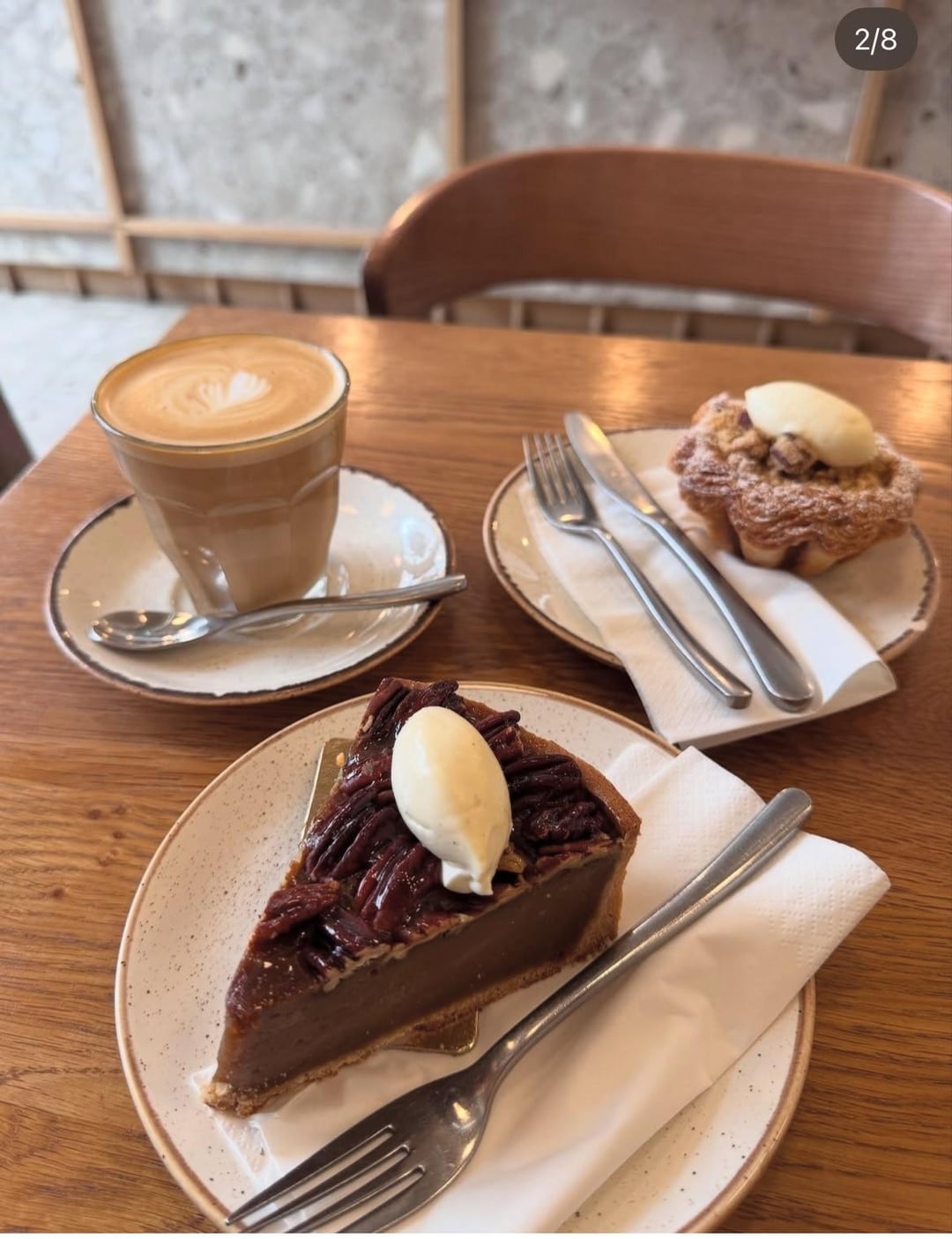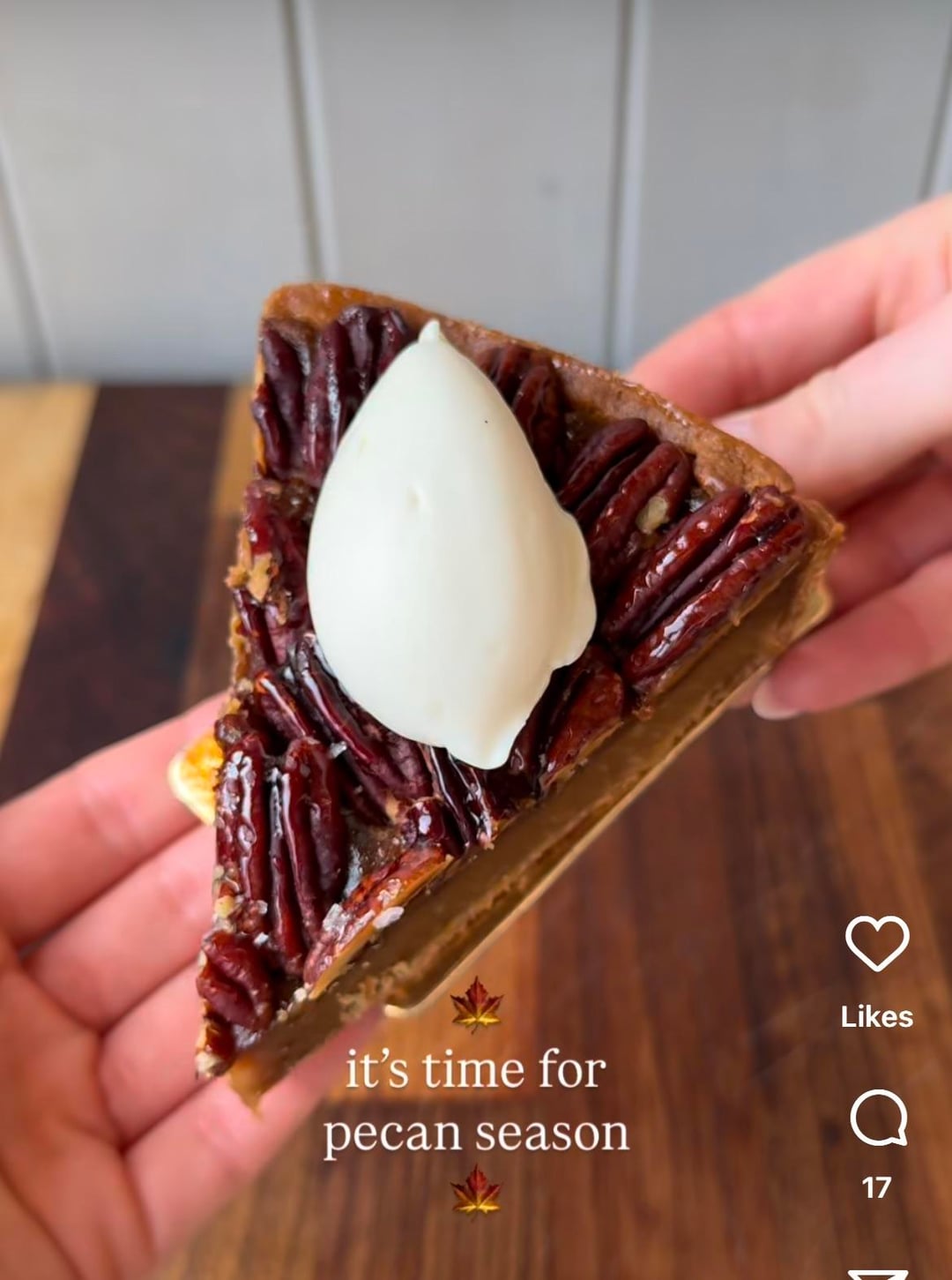 For a piece like that , you’re looking at 500–550 calories, give or take. Pecan pie is all about the buttery crust and syrupy, nutty richness, and the frosting just tips it a bit higher. If you’re sharing or just going all in, every bite is totally worth it!