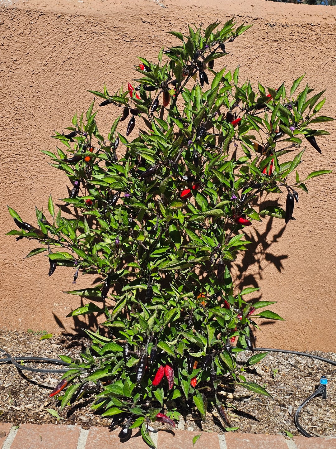 This is 2 of 5 of our pepper plants. We have to harvest every week or so! We eat them, pickle them and even dehydrate them to make seasoning! The purple one is named Death because we thought it wasn't gonna make it after transplanting! We call the other one Big Bertha, which I think it's pretty fitting! I hope your peppers are as happy and healthy as ours!