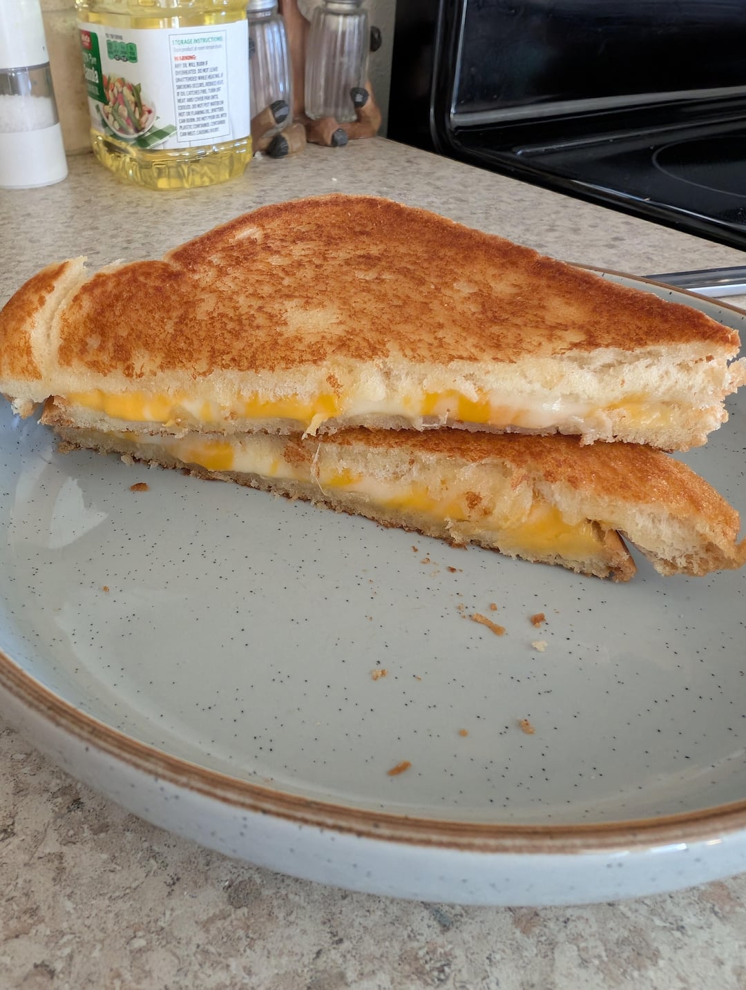 I haven't made a grilled cheese in forever! Used to be a staple when I was younger.by manbearpig541 6 Comments BlkFish27 2 months ago  MagazineDelicious151 2 months ago Welcome back YunaBell0202 2 months ago pretty solid 🙂 2morrowwillbebetter 2 months ago Why does the top slice of the bread have a phat ass yummo7654 2 months ago What kinda cheese? LocksmithGlass717 2 months ago Looks delicious