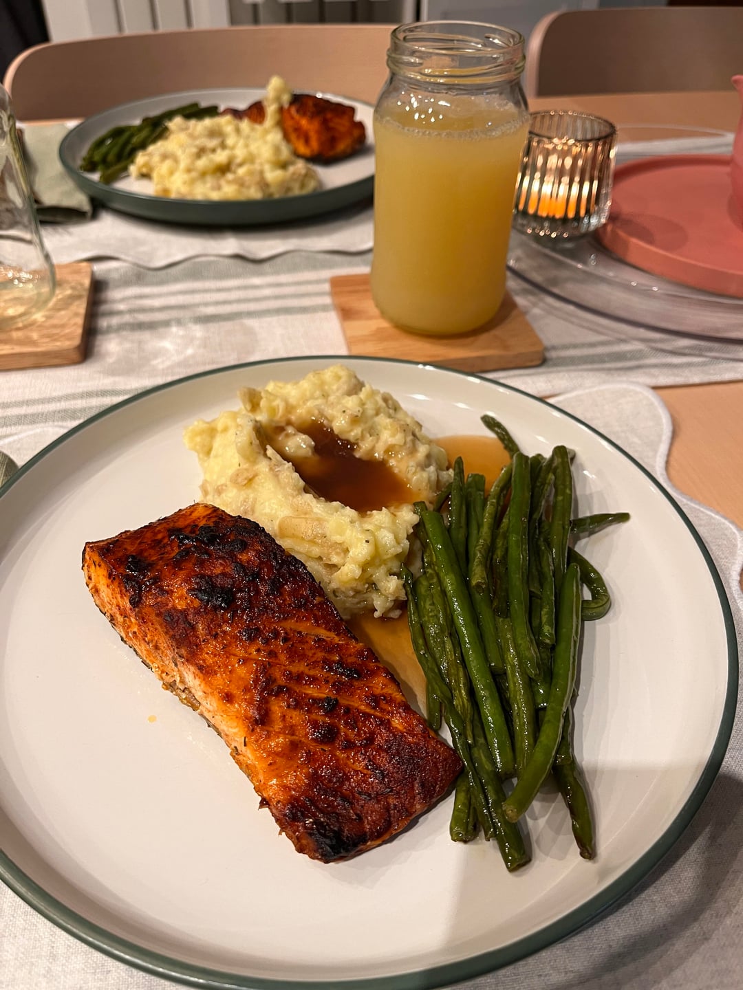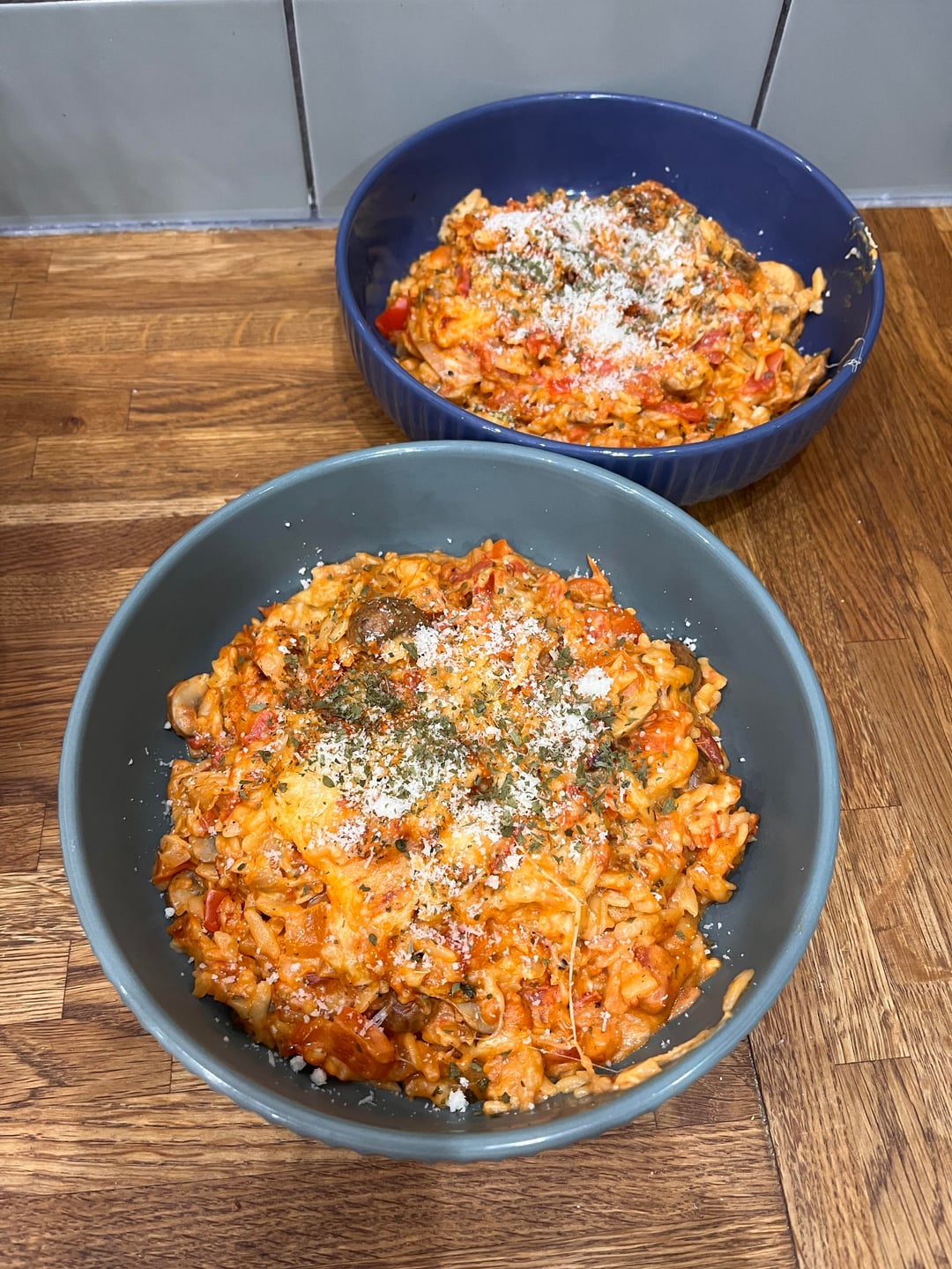 – teriyaki salmon bowl with jasmine rice, avocado, cucumber and sweetcorn topped with sriracha and furikake – creamy tomato orzo bake – quiche with mushrooms and tomatoes with roasted potatoes and broccoli – crispy teriyaki tofu with rice, green beans and carrots – salmon, green beans, mashed potatoes and gravy – japanese curry with potato, carrot, tofu, rice, green onions and shrimp tempura – seared yellowfin tuna steaks with salad – orzo veggie soup topped with crispy chili oil – fish cakes with romaine lettuce, cucumber, cherry tomatoes and avocado, topped with parmesan, sriracha and a homemade dressing – butter bean orzo with mushrooms and spinach