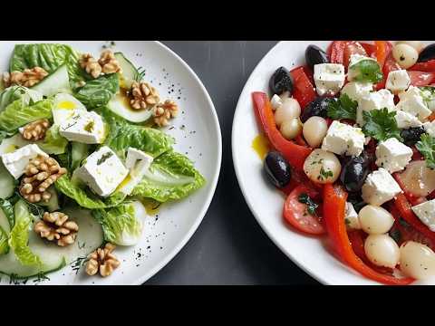 In this video, we will share with you two unique feta cheese salad recipes that are not traditional Greek. The first salad combines juicy tomatoes and sweet bell peppers, served with a light dressing of olive oil and balsamic vinegar. In the second recipe, we use fresh cucumbers and crunchy green lettuce, adding extra ingredients for a burst of flavor.