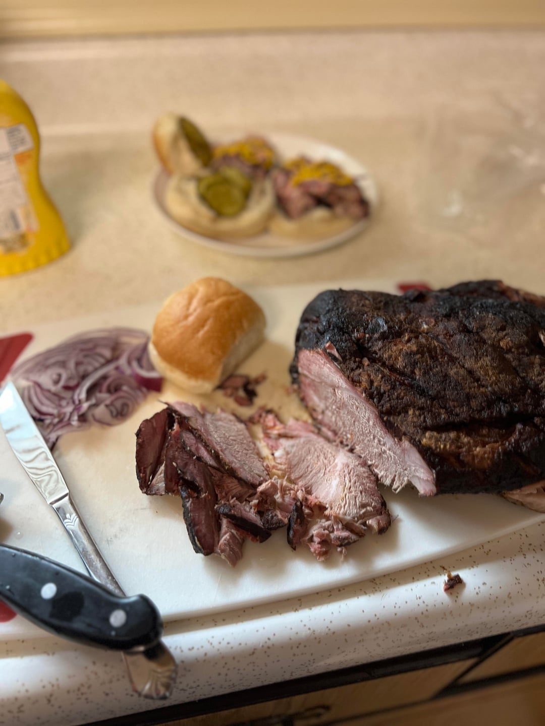 12 hr *sliced* pork ;). What temp did you get the Jr to settle in at?