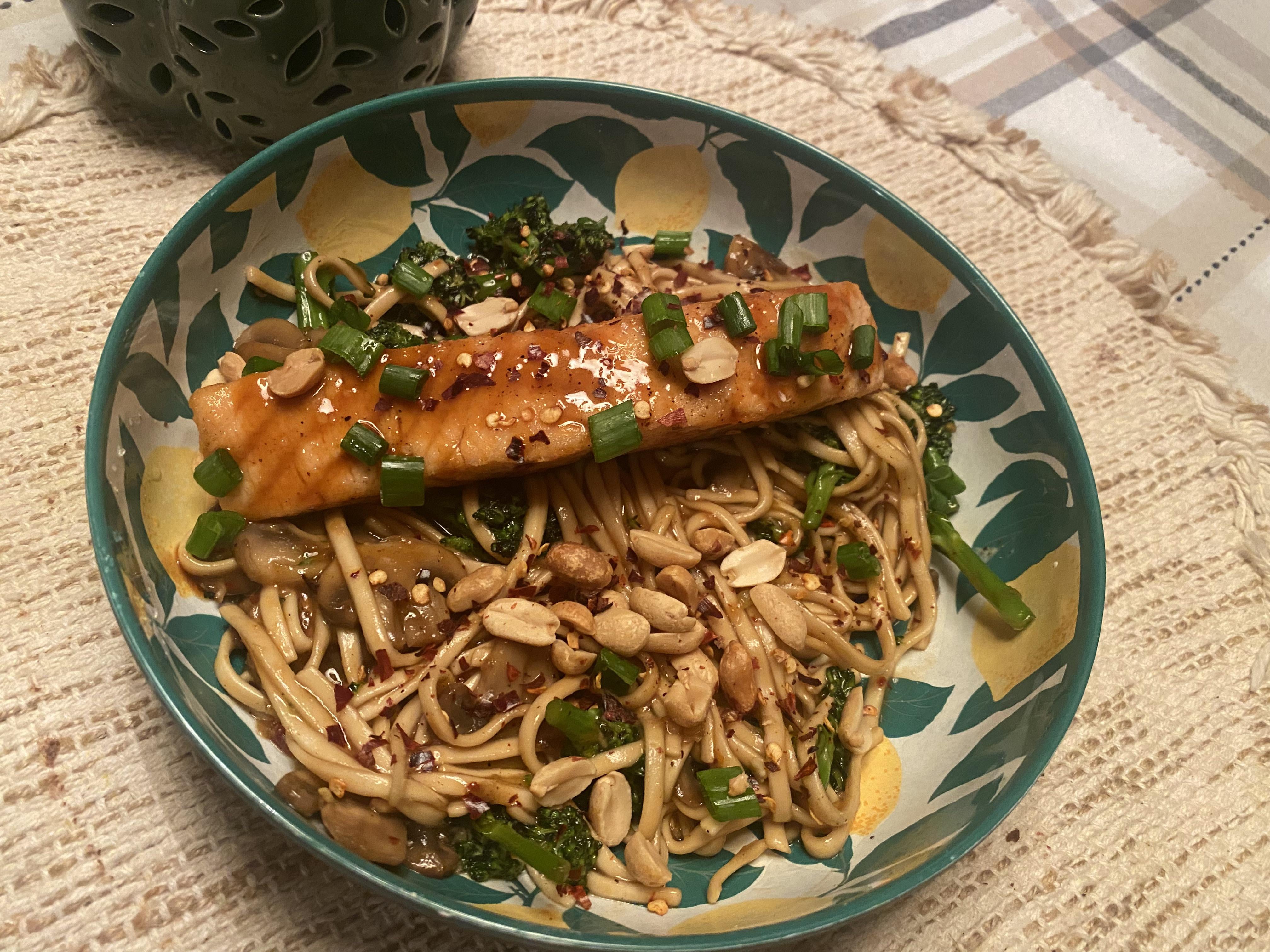 Thai inspired salmon lo mein