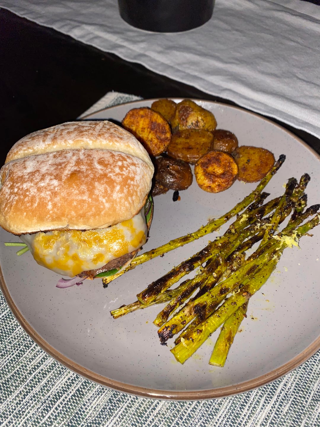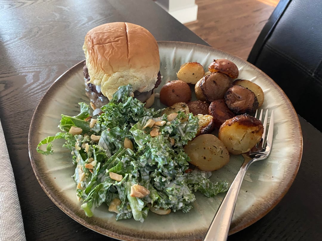 Burger and potatoes look amazing, but WHATS that green stuff in the last pic? Looks like that weird stuff thst grows in the dirt.