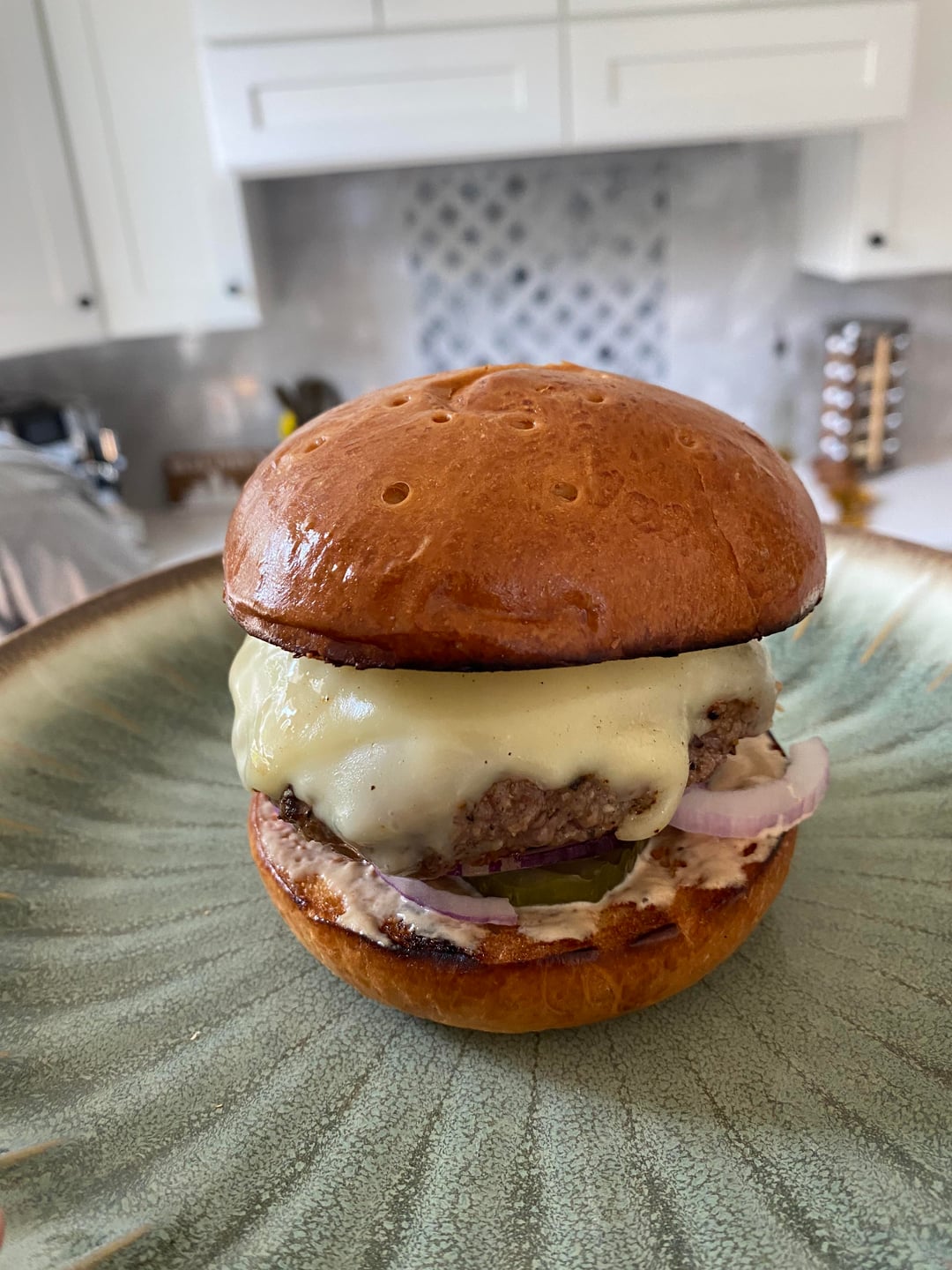 I was challenged to post some of my offerings. I found some on my phone. Typically will use white American cheese. Pickle and onion are a must. Usually will throw some kind of green on, and make a mayo based sauce. I do not like tomato on my burgers!