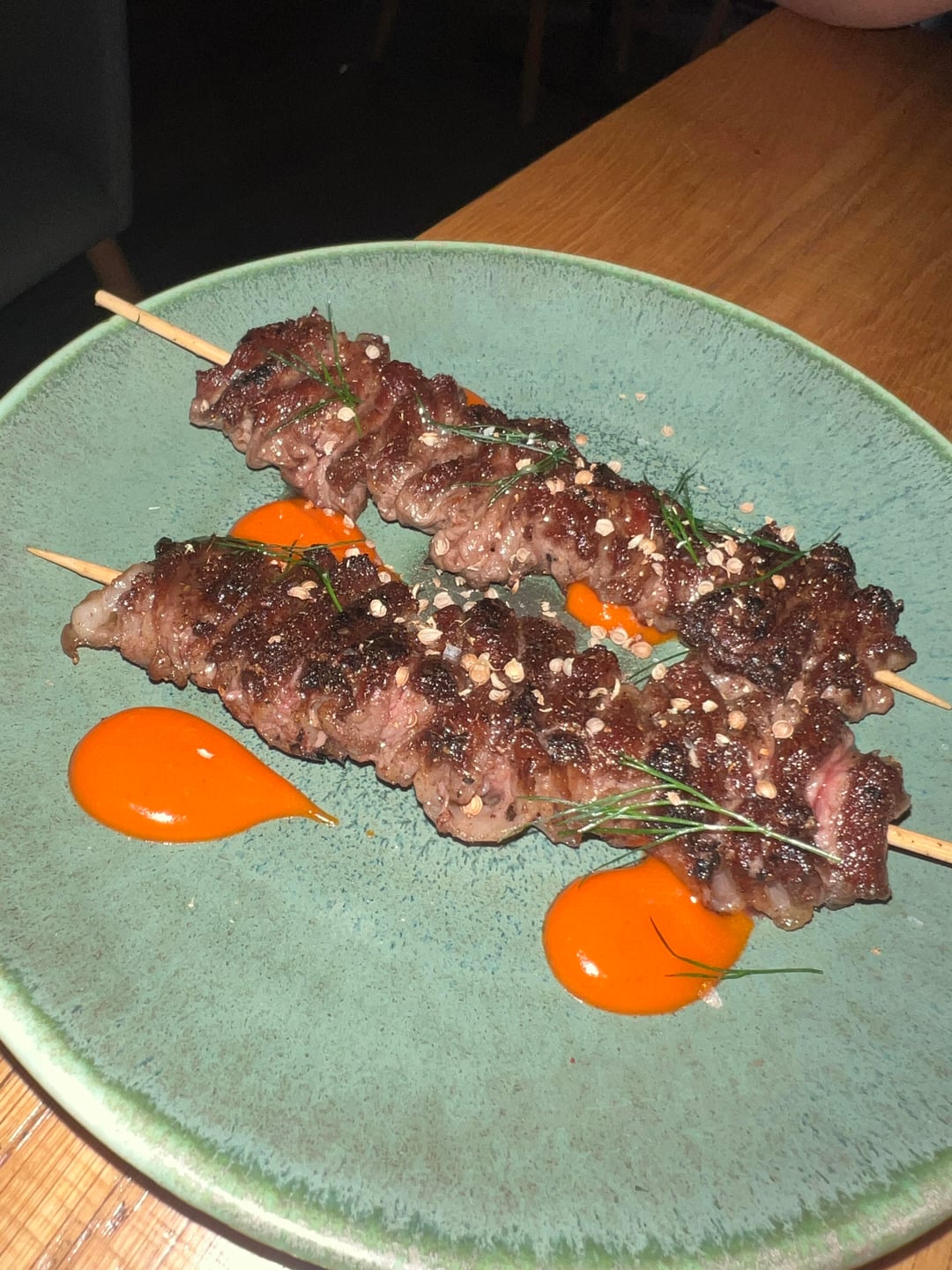 I ordered 3 pastas: the infamous Cacio whey Pepe, milk-braised Rabbit pappardelle, Harissa-braised Lamb Saltimbocca potstickers. They were amazing, but the Wagyu skewers were the star. Chef Sarah Grueneberg said the skewers were underrated, and she’s right!