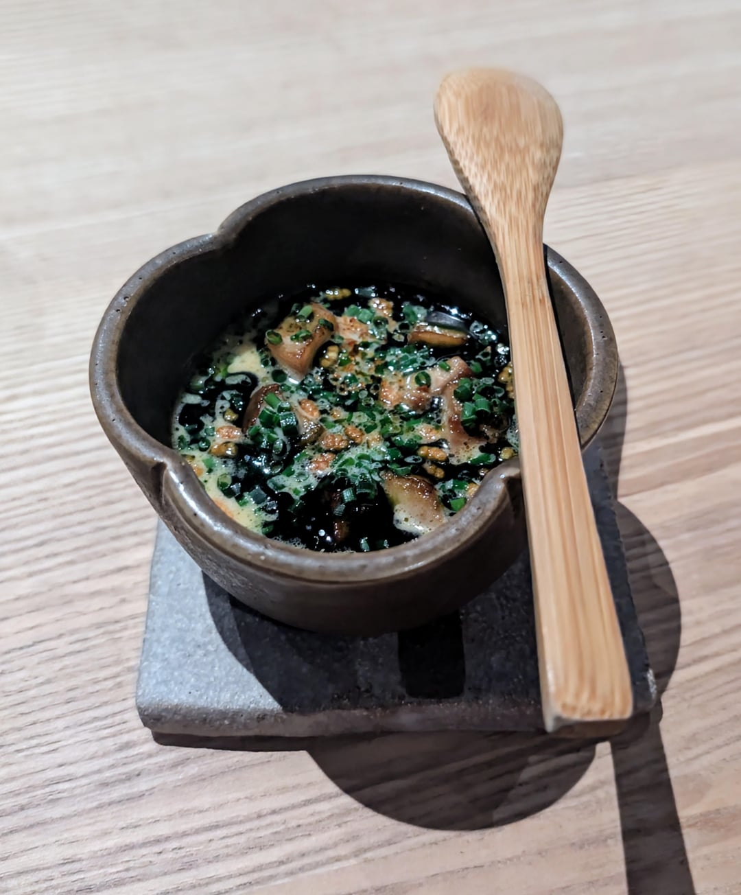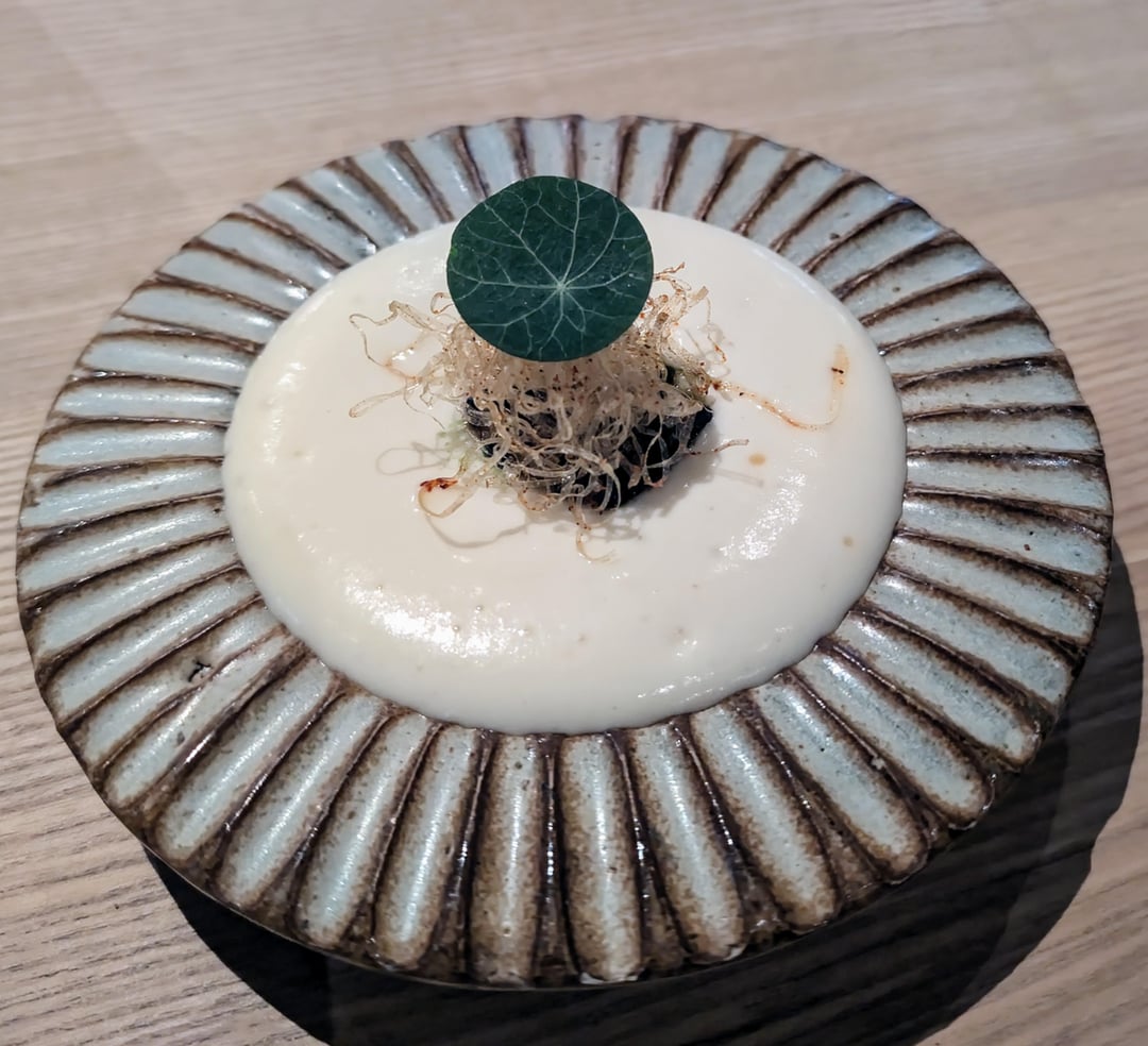 Lightly flavoured and set custard, hints of seaweed. nice earthiness from the cep. Sauce added depth and sweetness