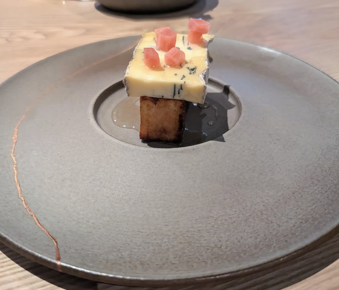 11. Sourdough French toast, Cotes hill blue, spruce honey and rhubarb