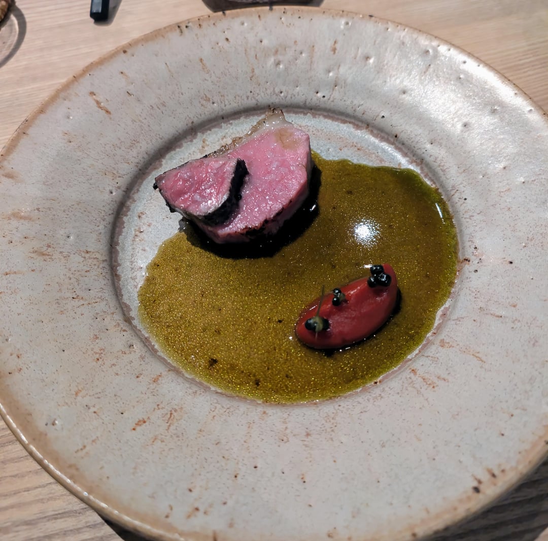 Lovely lamb, pepper relish added a nice spice. Salad was fully of flavour, capers and smokey aubergine. Bread was good and looked to be loaded with garlic but wasn't, so didn't overpower the main dish