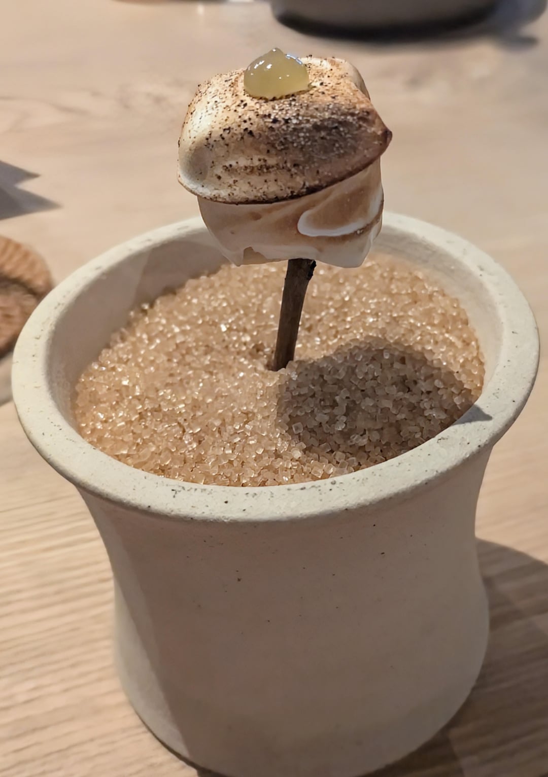 Sweet marshmallow, great apple taste. Nice contrast between the textures and temperatures. Worked really well
