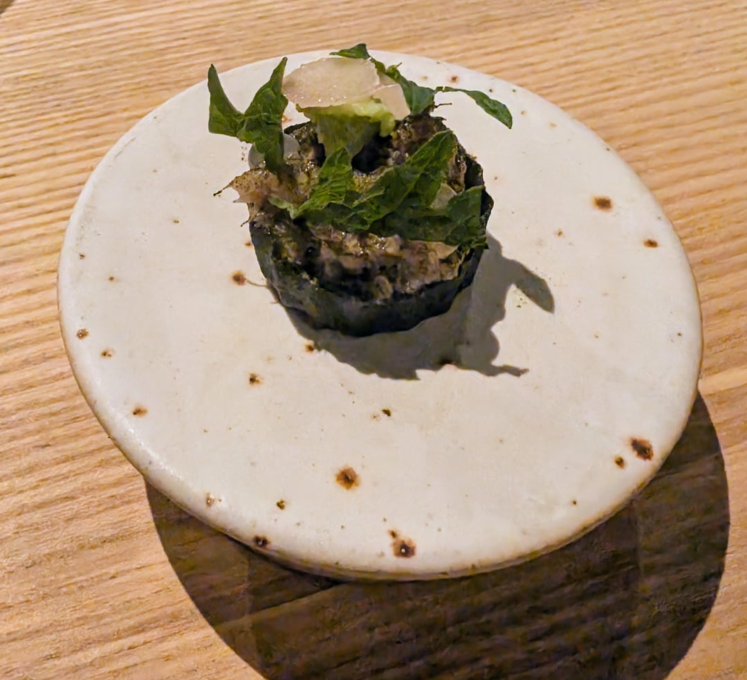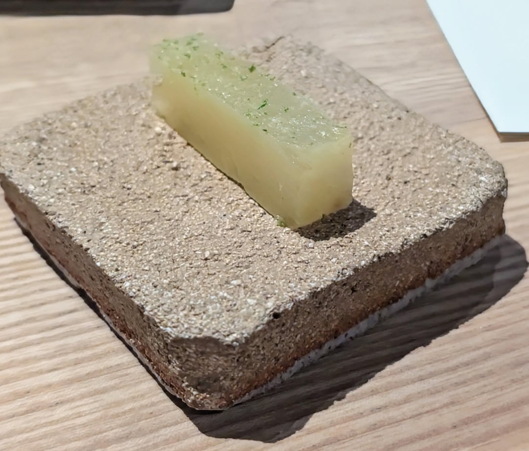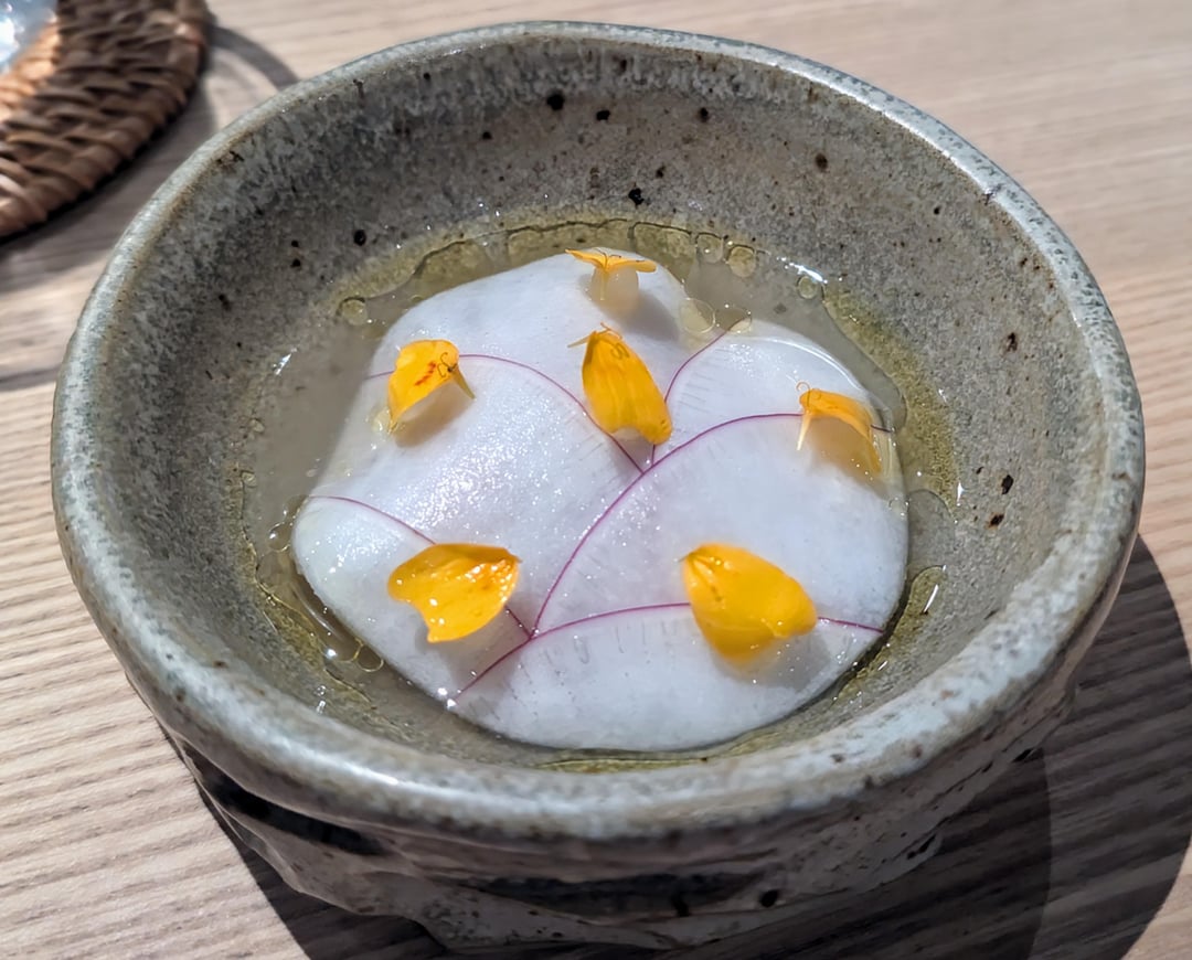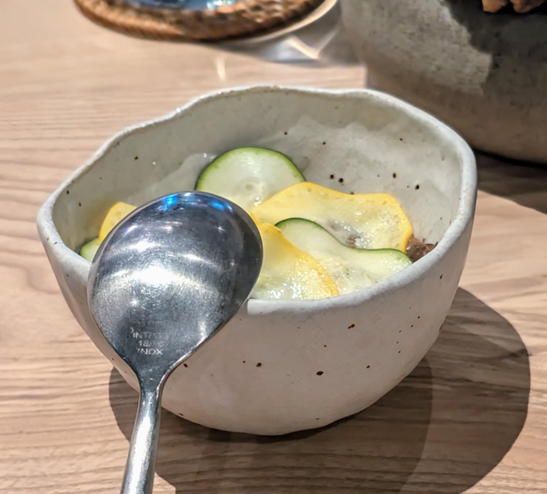Perfectly cooked trout, soft and moist. Nice citrus hit. Hint of spice that lingered for a while from the kosho, made with Amalfi lemon