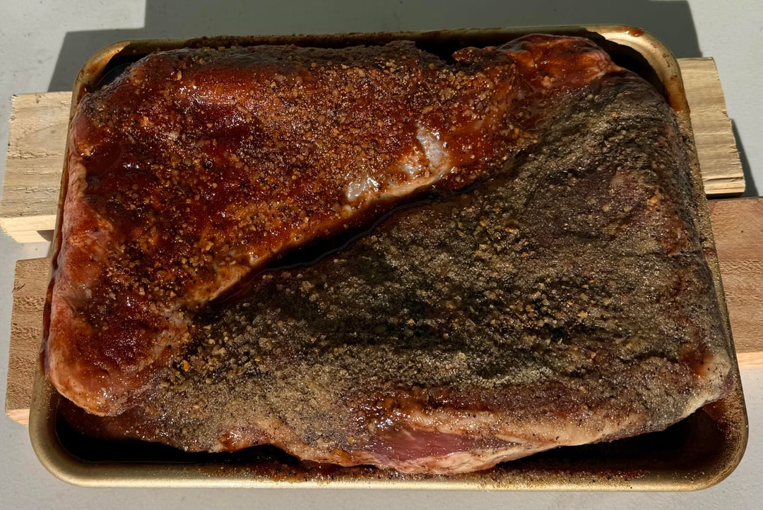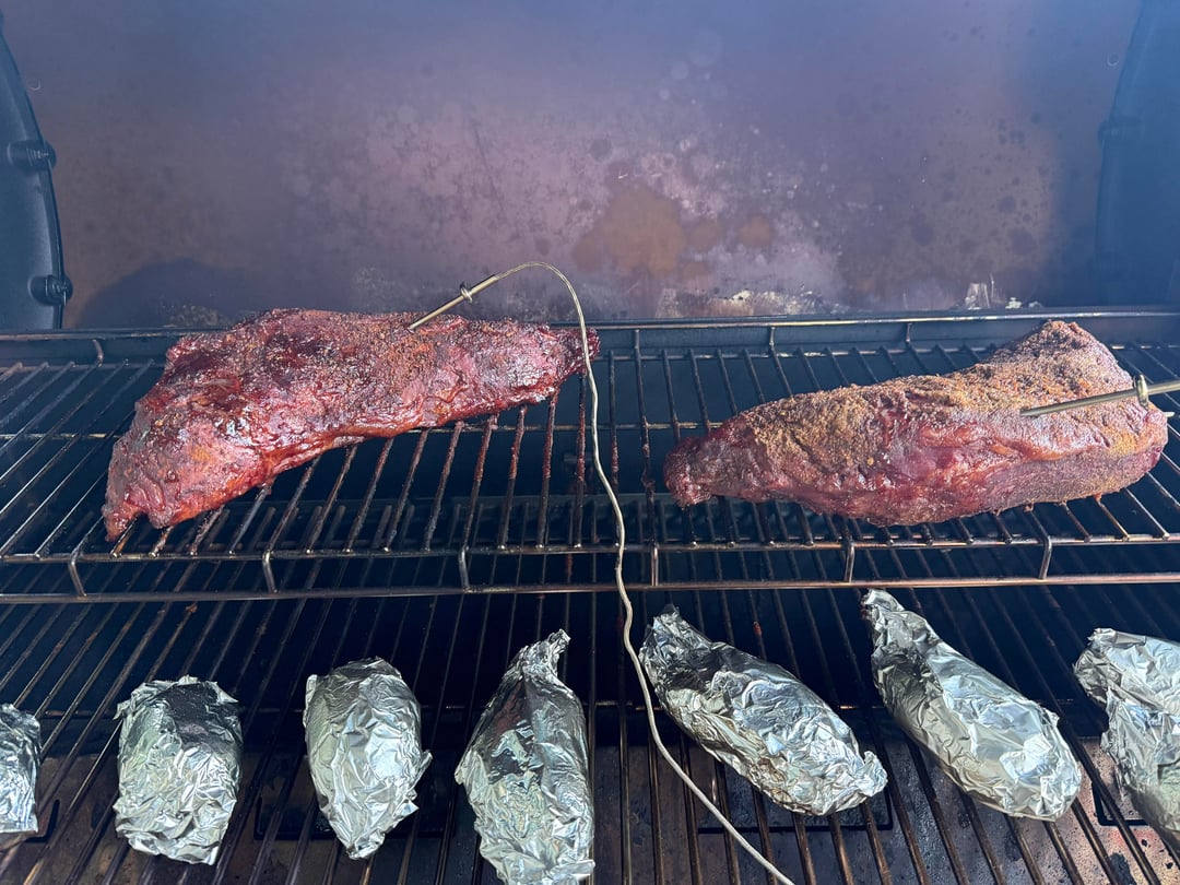Both cuts were lathered with Sweet Baby Rays BBQ sauce then added Montreal Steak Seasoning on both. Then one got heavily dusted with Traeger Beef Rub and the second Hey Grill Hey Beef Rub. They hung out over night in the fridge. During the moving around I lost track of which was which, but only had meat from one so I’ll see how the other is on Monday. Pretty sure we had the Traeger tonight.