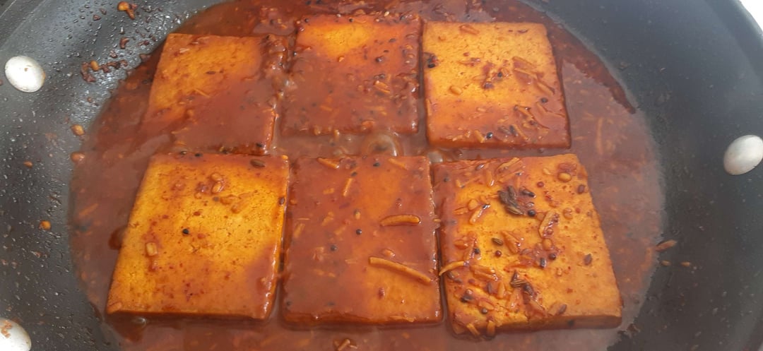 Spicy Coconut Tofu (an Indian spin on Dubu-Jorim / Korean Spicy Braised Tofu)
